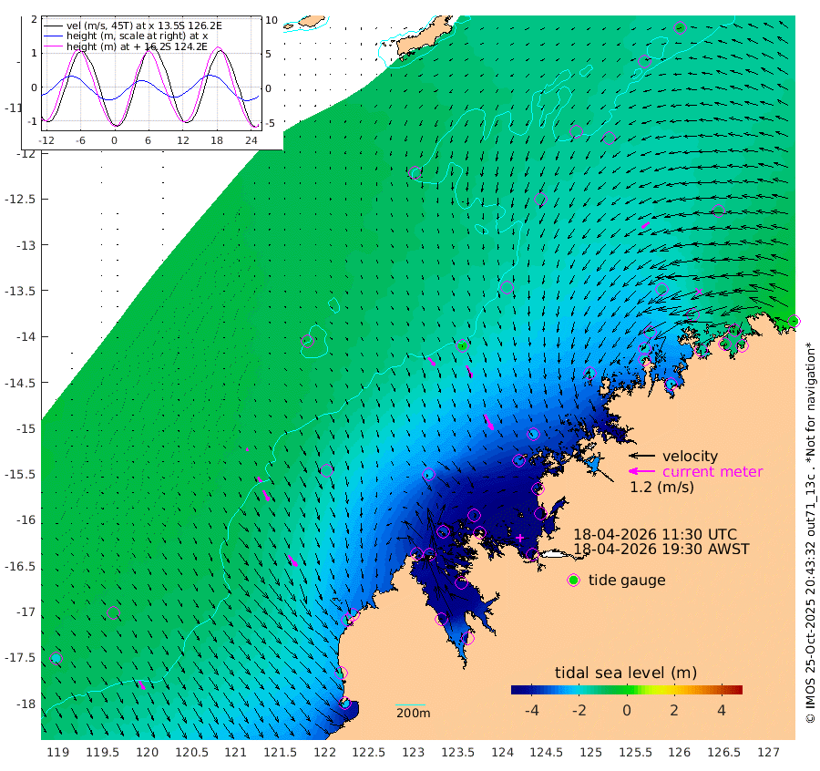 45cm/s 138T +10cm/s rms + 1cm/s 1T. NWSBRW 205m 46cm/s 149T +11cm/s rms + 6cm/s -110T. NWSROW 199m 80cm/s 153T +5cm/s rms + 2cm/s 65T. CAM050 58m 62cm/s 156T +12cm/s rms + 5cm/s 92T. CAM100 99m 13cm/s 149T +7cm/s rms + 1cm/s -85T. KIM400 396m 27cm/s 144T +9cm/s rms + 5cm/s -119T. KIM200 208m 54cm/s 151T +11cm/s rms + 5cm/s -147T. KIM100 99m 65cm/s 143T +8cm/s rms + 3cm/s -103T. KIM050 59m 41cm/s -126T +4cm/s rms + 2cm/s 23T. TIMORS88 91m -187cm Imperieuse Reef -75cm Mermaid Reef -217cm Broome -158cm Cape Baskerville -254cm Red Bluff -152cm Cape Boileau -69cm Scott Reef (WA) -130cm Ashmore Reef -381cm Karrakatta Bay -372cm Sunday Island -460cm Valentine Island -410cm Derby -431cm Port Usborne -358cm Bedford Islands -405cm Yampi Sound (Koolan Island) -400cm Macleay Island -239cm Adele Island -2cm Browse Island -533cm Shale Island -497cm Lizard Island -371cm Hall Point -306cm Degerando Island -254cm White Island -123cm Skua No. 4 Well -126cm Jabiru -197cm Maret Island -181cm Baudin Island -178cm Cape Voltaire (Krait Bay) -129cm Dillon Shoal -58cm Laminaria -217cm Port Warrender -153cm Troughton Island -173cm Cassini Island -126cm West Holothuria Reef Offshore -140cm Jar Island -139cm Lynher Bank -147cm Heywood Shoal -129cm Pee Shoal -100cm Van Cloon Shoal -67cm Carronade Island -65cm Guy Point -62cm Napier Broome Bay -4cm Lesueur Island