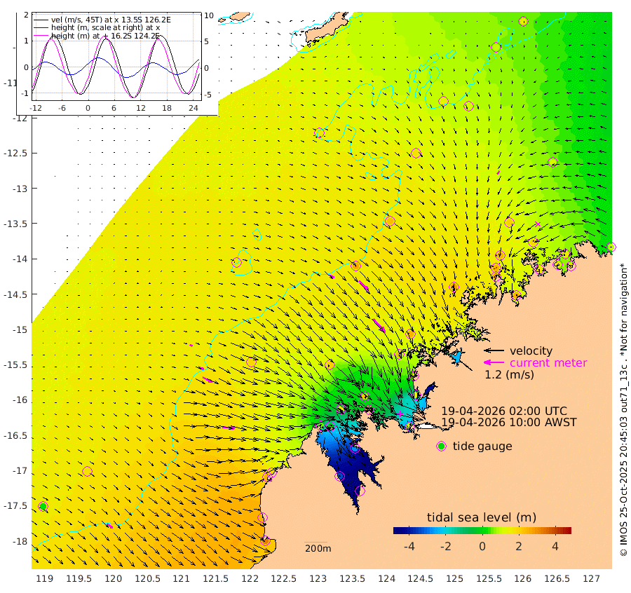 31cm/s 117T +10cm/s rms + 1cm/s 1T. NWSBRW 205m 42cm/s 130T +11cm/s rms + 6cm/s -110T. NWSROW 199m 110cm/s 139T +5cm/s rms + 2cm/s 65T. CAM050 58m 78cm/s 134T +12cm/s rms + 5cm/s 92T. CAM100 99m 17cm/s 107T +7cm/s rms + 1cm/s -85T. KIM400 396m 37cm/s 113T +9cm/s rms + 5cm/s -119T. KIM200 208m 65cm/s 117T +11cm/s rms + 5cm/s -147T. KIM100 99m 78cm/s 95T +8cm/s rms + 3cm/s -103T. KIM050 59m 23cm/s -142T +4cm/s rms + 2cm/s 23T. TIMORS88 91m 28cm Imperieuse Reef 174cm Mermaid Reef 320cm Broome 255cm Cape Baskerville 187cm Red Bluff 244cm Cape Boileau 164cm Scott Reef (WA) 150cm Ashmore Reef 57cm Karrakatta Bay 12cm Sunday Island -334cm Valentine Island -452cm Derby -273cm Port Usborne 152cm Bedford Islands 181cm Yampi Sound (Koolan Island) 222cm Macleay Island 210cm Adele Island 255cm Browse Island 126cm Shale Island 136cm Lizard Island 128cm Hall Point 230cm Degerando Island 254cm White Island 174cm Skua No. 4 Well 111cm Jabiru 271cm Maret Island 247cm Baudin Island 257cm Cape Voltaire (Krait Bay) 93cm Dillon Shoal 139cm Laminaria 253cm Port Warrender 189cm Troughton Island 251cm Cassini Island 196cm West Holothuria Reef Offshore 171cm Jar Island 192cm Lynher Bank 237cm Heywood Shoal 140cm Pee Shoal 114cm Van Cloon Shoal 162cm Carronade Island 172cm Guy Point 165cm Napier Broome Bay 100cm Lesueur Island