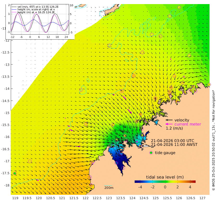 31cm/s 115T +10cm/s rms + 1cm/s 1T. NWSBRW 205m 40cm/s 130T +11cm/s rms + 6cm/s -110T. NWSROW 199m 103cm/s 139T +5cm/s rms + 2cm/s 65T. CAM050 58m 74cm/s 134T +12cm/s rms + 5cm/s 92T. CAM100 99m 15cm/s 108T +7cm/s rms + 1cm/s -85T. KIM400 396m 34cm/s 114T +9cm/s rms + 5cm/s -119T. KIM200 208m 61cm/s 119T +11cm/s rms + 5cm/s -147T. KIM100 99m 73cm/s 95T +8cm/s rms + 3cm/s -103T. KIM050 59m 22cm/s -147T +4cm/s rms + 2cm/s 23T. TIMORS88 91m 27cm Imperieuse Reef 165cm Mermaid Reef 296cm Broome 235cm Cape Baskerville 184cm Red Bluff 235cm Cape Boileau 153cm Scott Reef (WA) 141cm Ashmore Reef 43cm Karrakatta Bay 11cm Sunday Island -337cm Valentine Island -438cm Derby -277cm Port Usborne 130cm Bedford Islands 166cm Yampi Sound (Koolan Island) 176cm Macleay Island 186cm Adele Island 230cm Browse Island 106cm Shale Island 126cm Lizard Island 131cm Hall Point 214cm Degerando Island 241cm White Island 158cm Skua No. 4 Well 109cm Jabiru 249cm Maret Island 231cm Baudin Island 246cm Cape Voltaire (Krait Bay) 94cm Dillon Shoal 133cm Laminaria 251cm Port Warrender 181cm Troughton Island 235cm Cassini Island 191cm West Holothuria Reef Offshore 174cm Jar Island 183cm Lynher Bank 232cm Heywood Shoal 131cm Pee Shoal 122cm Van Cloon Shoal 174cm Carronade Island 184cm Guy Point 181cm Napier Broome Bay 123cm Lesueur Island