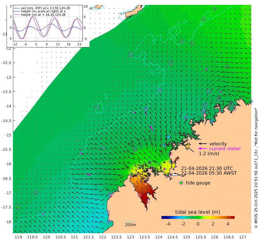 27cm/s -57T +10cm/s rms + 1cm/s 1T. NWSBRW 205m 30cm/s -50T +11cm/s rms + 6cm/s -110T. NWSROW 199m 82cm/s -32T +5cm/s rms + 2cm/s 65T. CAM050 58m 57cm/s -37T +12cm/s rms + 5cm/s 92T. CAM100 99m 11cm/s -67T +7cm/s rms + 1cm/s -85T. KIM400 396m 27cm/s -63T +9cm/s rms + 5cm/s -119T. KIM200 208m 48cm/s -58T +11cm/s rms + 5cm/s -147T. KIM100 99m 56cm/s -83T +8cm/s rms + 3cm/s -103T. KIM050 59m 34cm/s 63T +4cm/s rms + 2cm/s 23T. TIMORS88 91m 6cm Imperieuse Reef -101cm Mermaid Reef -224cm Broome -170cm Cape Baskerville -127cm Red Bluff -173cm Cape Boileau -90cm Scott Reef (WA) -72cm Ashmore Reef -4cm Karrakatta Bay 35cm Sunday Island 317cm Valentine Island 412cm Derby 271cm Port Usborne -75cm Bedford Islands -111cm Yampi Sound (Koolan Island) -116cm Macleay Island -118cm Adele Island -185cm Browse Island -62cm Shale Island -80cm Lizard Island -97cm Hall Point -154cm Degerando Island -180cm White Island -84cm Skua No. 4 Well -44cm Jabiru -175cm Maret Island -164cm Baudin Island -174cm Cape Voltaire (Krait Bay) -26cm Dillon Shoal -45cm Laminaria -185cm Port Warrender -109cm Troughton Island -158cm Cassini Island -119cm West Holothuria Reef Offshore -115cm Jar Island -117cm Lynher Bank -144cm Heywood Shoal -55cm Pee Shoal -58cm Van Cloon Shoal -111cm Carronade Island -113cm Guy Point -116cm Napier Broome Bay -65cm Lesueur Island