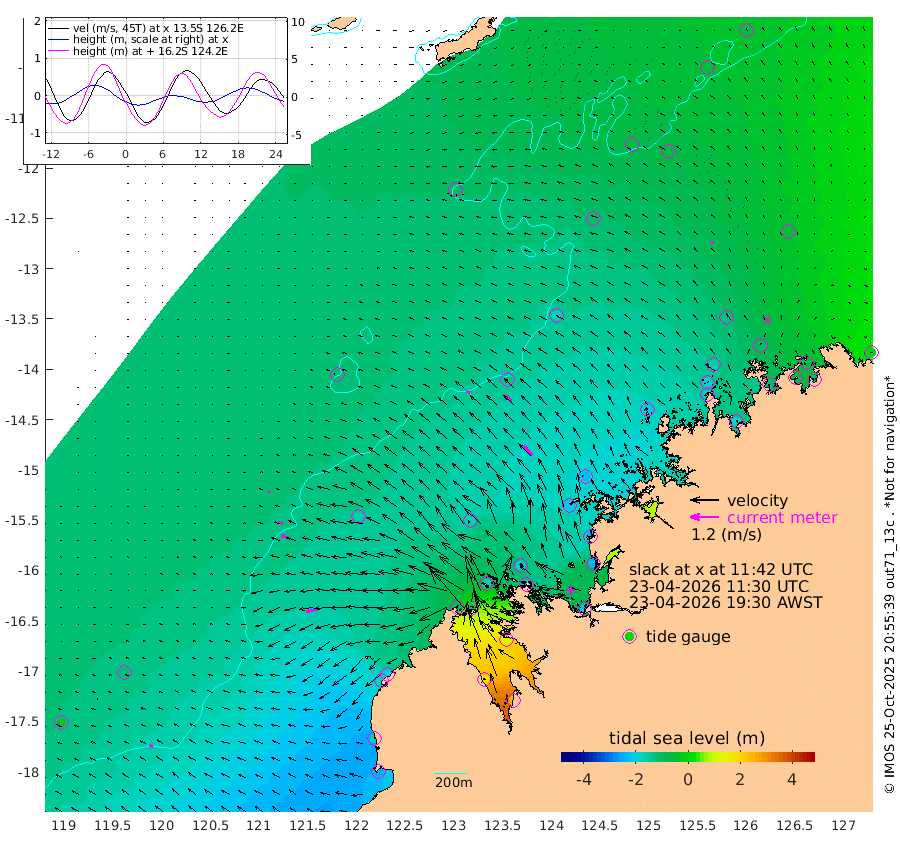 15cm/s -68T +10cm/s rms + 1cm/s 1T. NWSBRW 205m 15cm/s -65T +11cm/s rms + 6cm/s -110T. NWSROW 199m 50cm/s -44T +5cm/s rms + 2cm/s 65T. CAM050 58m 37cm/s -55T +12cm/s rms + 5cm/s 92T. CAM100 99m 10cm/s -84T +7cm/s rms + 1cm/s -85T. KIM400 396m 19cm/s -78T +9cm/s rms + 5cm/s -119T. KIM200 208m 31cm/s -70T +11cm/s rms + 5cm/s -147T. KIM100 99m 43cm/s -103T +8cm/s rms + 3cm/s -103T. KIM050 59m 10cm/s -26T +4cm/s rms + 2cm/s 23T. TIMORS88 91m -41cm Imperieuse Reef -119cm Mermaid Reef -254cm Broome -185cm Cape Baskerville -195cm Red Bluff -176cm Cape Boileau -102cm Scott Reef (WA) -101cm Ashmore Reef -118cm Karrakatta Bay -98cm Sunday Island 170cm Valentine Island 249cm Derby 113cm Port Usborne -177cm Bedford Islands -217cm Yampi Sound (Koolan Island) -197cm Macleay Island -167cm Adele Island -133cm Browse Island -218cm Shale Island -228cm Lizard Island -231cm Hall Point -213cm Degerando Island -227cm White Island -101cm Skua No. 4 Well -72cm Jabiru -195cm Maret Island -185cm Baudin Island -180cm Cape Voltaire (Krait Bay) -50cm Dillon Shoal -87cm Laminaria -184cm Port Warrender -95cm Troughton Island -158cm Cassini Island -120cm West Holothuria Reef Offshore -108cm Jar Island -151cm Lynher Bank -166cm Heywood Shoal -74cm Pee Shoal -55cm Van Cloon Shoal -78cm Carronade Island -81cm Guy Point -77cm Napier Broome Bay -5cm Lesueur Island
