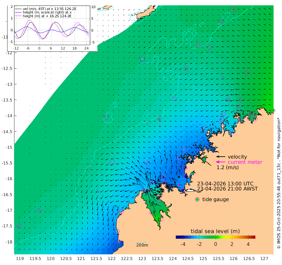 14cm/s 162T +10cm/s rms + 1cm/s 1T. NWSBRW 205m 10cm/s -174T +11cm/s rms + 6cm/s -110T. NWSROW 199m 13cm/s -110T +5cm/s rms + 2cm/s 65T. CAM050 58m 15cm/s -123T +12cm/s rms + 5cm/s 92T. CAM100 99m 6cm/s -124T +7cm/s rms + 1cm/s -85T. KIM400 396m 9cm/s -129T +9cm/s rms + 5cm/s -119T. KIM200 208m 15cm/s -140T +11cm/s rms + 5cm/s -147T. KIM100 99m 30cm/s -150T +8cm/s rms + 3cm/s -103T. KIM050 59m 21cm/s -112T +4cm/s rms + 2cm/s 23T. TIMORS88 91m -108cm Imperieuse Reef -117cm Mermaid Reef -256cm Broome -182cm Cape Baskerville -210cm Red Bluff -179cm Cape Boileau -107cm Scott Reef (WA) -124cm Ashmore Reef -234cm Karrakatta Bay -229cm Sunday Island -83cm Valentine Island -24cm Derby -124cm Port Usborne -264cm Bedford Islands -310cm Yampi Sound (Koolan Island) -305cm Macleay Island -211cm Adele Island -94cm Browse Island -366cm Shale Island -384cm Lizard Island -314cm Hall Point -265cm Degerando Island -255cm White Island -125cm Skua No. 4 Well -122cm Jabiru -207cm Maret Island -190cm Baudin Island -190cm Cape Voltaire (Krait Bay) -91cm Dillon Shoal -97cm Laminaria -202cm Port Warrender -124cm Troughton Island -168cm Cassini Island -131cm West Holothuria Reef Offshore -126cm Jar Island -168cm Lynher Bank -173cm Heywood Shoal -108cm Pee Shoal -80cm Van Cloon Shoal -79cm Carronade Island -83cm Guy Point -82cm Napier Broome Bay -8cm Lesueur Island
