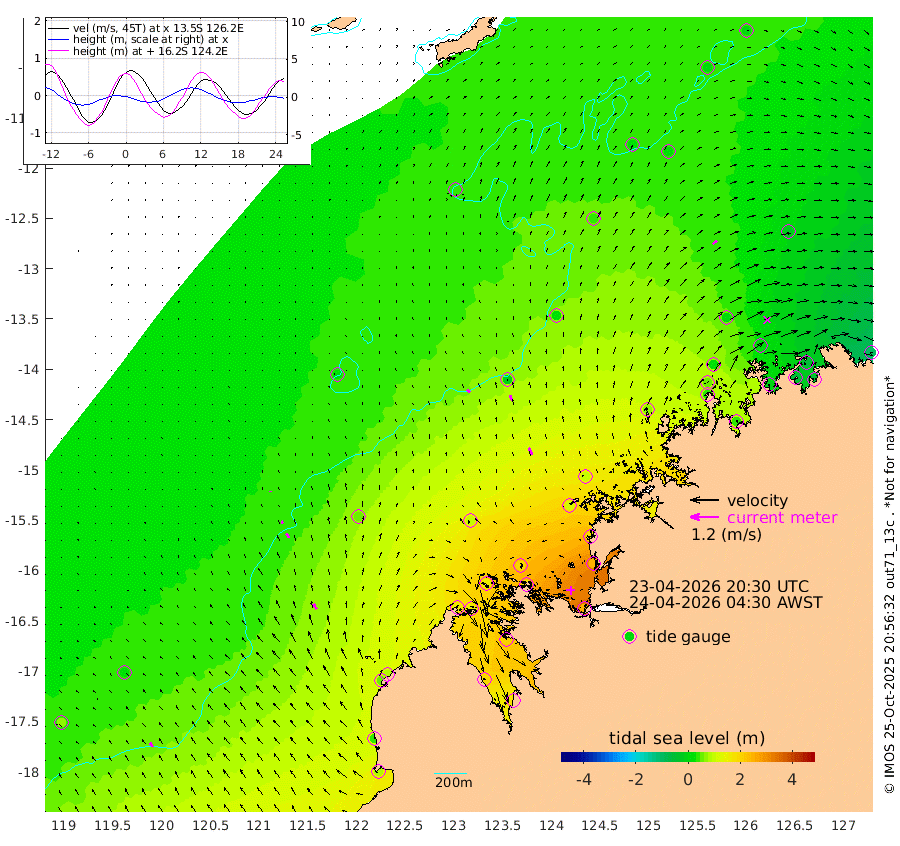 17cm/s -43T +10cm/s rms + 1cm/s 1T. NWSBRW 205m 21cm/s -30T +11cm/s rms + 6cm/s -110T. NWSROW 199m 32cm/s -26T +5cm/s rms + 2cm/s 65T. CAM050 58m 25cm/s -23T +12cm/s rms + 5cm/s 92T. CAM100 99m 4cm/s -5T +7cm/s rms + 1cm/s -85T. KIM400 396m 11cm/s -25T +9cm/s rms + 5cm/s -119T. KIM200 208m 21cm/s -27T +11cm/s rms + 5cm/s -147T. KIM100 99m 26cm/s -30T +8cm/s rms + 3cm/s -103T. KIM050 59m 21cm/s 53T +4cm/s rms + 2cm/s 23T. TIMORS88 91m 60cm Imperieuse Reef 23cm Mermaid Reef 88cm Broome 50cm Cape Baskerville 79cm Red Bluff 37cm Cape Boileau 20cm Scott Reef (WA) 32cm Ashmore Reef 163cm Karrakatta Bay 163cm Sunday Island 194cm Valentine Island 172cm Derby 203cm Port Usborne 164cm Bedford Islands 176cm Yampi Sound (Koolan Island) 195cm Macleay Island 97cm Adele Island -8cm Browse Island 248cm Shale Island 247cm Lizard Island 170cm Hall Point 120cm Degerando Island 99cm White Island 31cm Skua No. 4 Well 27cm Jabiru 63cm Maret Island 49cm Baudin Island 39cm Cape Voltaire (Krait Bay) 12cm Dillon Shoal 15cm Laminaria 37cm Port Warrender 3cm Troughton Island 27cm Cassini Island 8cm West Holothuria Reef Offshore 0cm Jar Island 56cm Lynher Bank 28cm Heywood Shoal 20cm Pee Shoal -20cm Van Cloon Shoal -47cm Carronade Island -49cm Guy Point -56cm Napier Broome Bay -101cm Lesueur Island