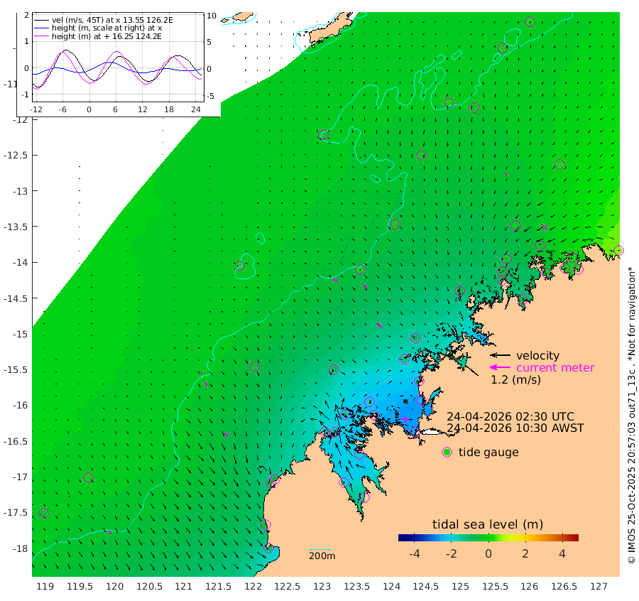 25cm/s 135T +10cm/s rms + 1cm/s 1T. NWSBRW 205m 19cm/s 148T +11cm/s rms + 6cm/s -110T. NWSROW 199m 32cm/s 146T +5cm/s rms + 2cm/s 65T. CAM050 58m 28cm/s 146T +12cm/s rms + 5cm/s 92T. CAM100 99m 4cm/s 151T +7cm/s rms + 1cm/s -85T. KIM400 396m 10cm/s 148T +9cm/s rms + 5cm/s -119T. KIM200 208m 22cm/s 153T +11cm/s rms + 5cm/s -147T. KIM100 99m 27cm/s 140T +8cm/s rms + 3cm/s -103T. KIM050 59m 16cm/s 177T +4cm/s rms + 2cm/s 23T. TIMORS88 91m -58cm Imperieuse Reef -11cm Mermaid Reef -80cm Broome -42cm Cape Baskerville -51cm Red Bluff -39cm Cape Boileau -11cm Scott Reef (WA) -18cm Ashmore Reef -145cm Karrakatta Bay -138cm Sunday Island -191cm Valentine Island -167cm Derby -195cm Port Usborne -140cm Bedford Islands -163cm Yampi Sound (Koolan Island) -186cm Macleay Island -82cm Adele Island -4cm Browse Island -232cm Shale Island -239cm Lizard Island -155cm Hall Point -113cm Degerando Island -96cm White Island -22cm Skua No. 4 Well -25cm Jabiru -56cm Maret Island -42cm Baudin Island -43cm Cape Voltaire (Krait Bay) -9cm Dillon Shoal 14cm Laminaria -51cm Port Warrender -15cm Troughton Island -27cm Cassini Island -7cm West Holothuria Reef Offshore -13cm Jar Island -43cm Lynher Bank -21cm Heywood Shoal -10cm Pee Shoal 17cm Van Cloon Shoal 28cm Carronade Island 29cm Guy Point 34cm Napier Broome Bay 74cm Lesueur Island