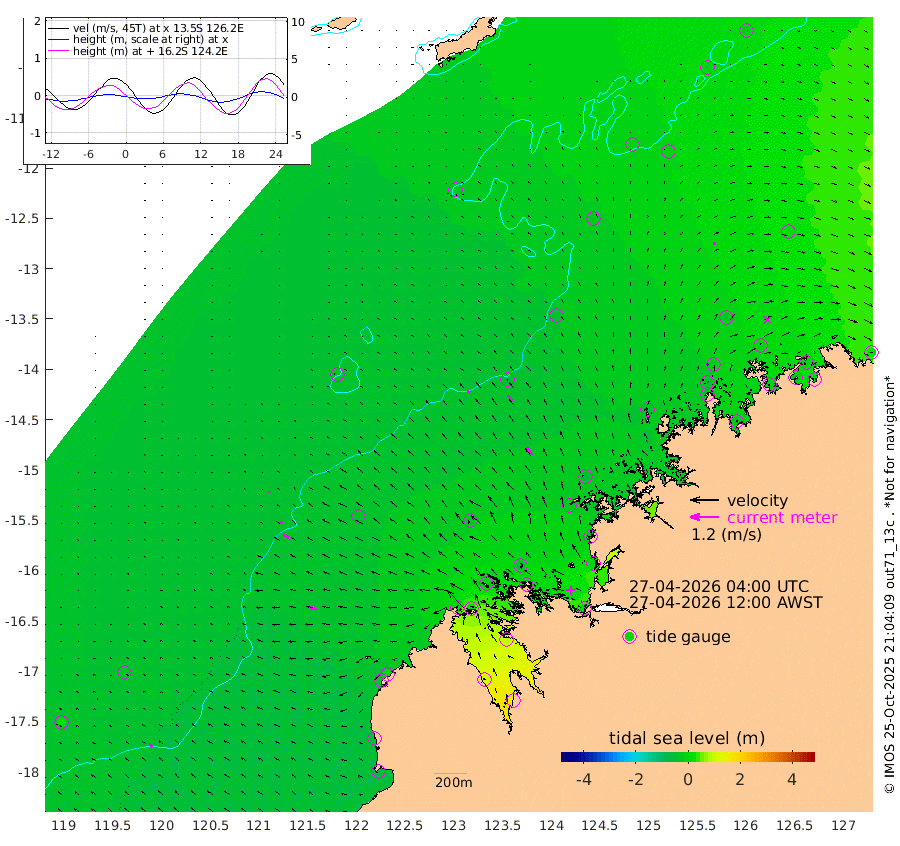 12cm/s -58T +10cm/s rms + 1cm/s 1T. NWSBRW 205m 17cm/s -45T +11cm/s rms + 6cm/s -110T. NWSROW 199m 39cm/s -36T +5cm/s rms + 2cm/s 65T. CAM050 58m 27cm/s -37T +12cm/s rms + 5cm/s 92T. CAM100 99m 7cm/s -66T +7cm/s rms + 1cm/s -85T. KIM400 396m 15cm/s -62T +9cm/s rms + 5cm/s -119T. KIM200 208m 26cm/s -53T +11cm/s rms + 5cm/s -147T. KIM100 99m 27cm/s -75T +8cm/s rms + 3cm/s -103T. KIM050 59m 11cm/s 75T +4cm/s rms + 2cm/s 23T. TIMORS88 91m 20cm Imperieuse Reef -39cm Mermaid Reef -64cm Broome -44cm Cape Baskerville 2cm Red Bluff -40cm Cape Boileau -37cm Scott Reef (WA) -15cm Ashmore Reef 21cm Karrakatta Bay 27cm Sunday Island 125cm Valentine Island 146cm Derby 92cm Port Usborne -1cm Bedford Islands -16cm Yampi Sound (Koolan Island) -53cm Macleay Island -35cm Adele Island -70cm Browse Island -3cm Shale Island -6cm Lizard Island -36cm Hall Point -26cm Degerando Island -50cm White Island -26cm Skua No. 4 Well -9cm Jabiru -41cm Maret Island -37cm Baudin Island -36cm Cape Voltaire (Krait Bay) -6cm Dillon Shoal -30cm Laminaria -26cm Port Warrender -9cm Troughton Island -25cm Cassini Island -24cm West Holothuria Reef Offshore -7cm Jar Island -37cm Lynher Bank -42cm Heywood Shoal -6cm Pee Shoal 11cm Van Cloon Shoal -6cm Carronade Island -16cm Guy Point -1cm Napier Broome Bay 25cm Lesueur Island