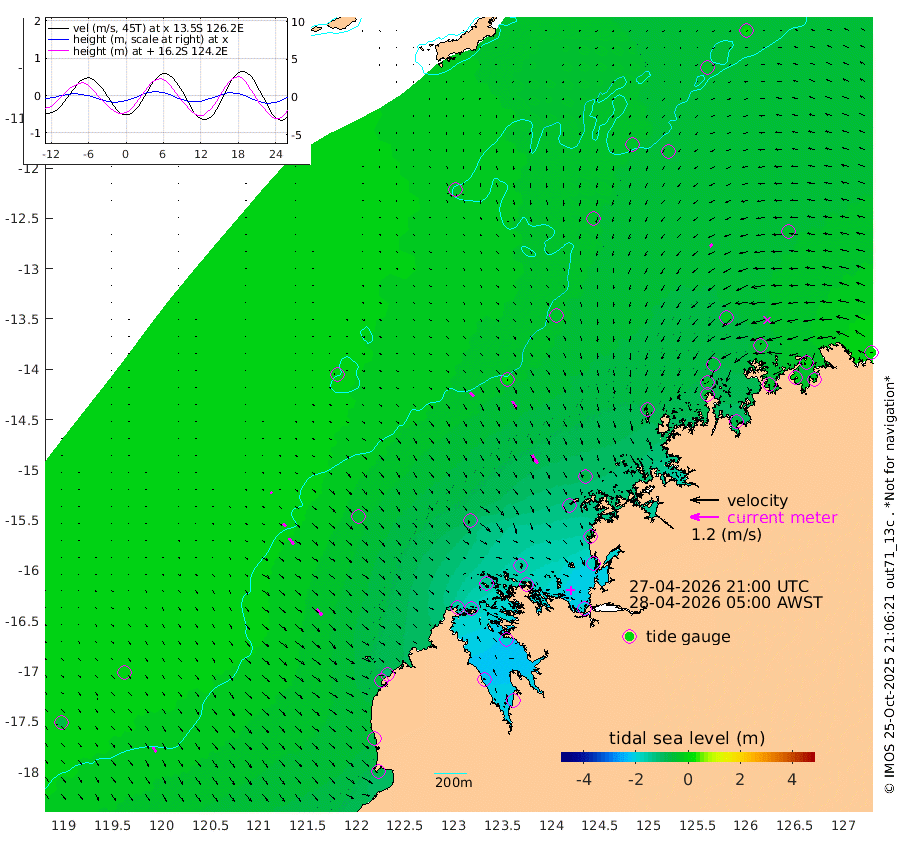 20cm/s 134T +10cm/s rms + 1cm/s 1T. NWSBRW 205m 25cm/s 146T +11cm/s rms + 6cm/s -110T. NWSROW 199m 42cm/s 149T +5cm/s rms + 2cm/s 65T. CAM050 58m 33cm/s 149T +12cm/s rms + 5cm/s 92T. CAM100 99m 7cm/s 135T +7cm/s rms + 1cm/s -85T. KIM400 396m 16cm/s 132T +9cm/s rms + 5cm/s -119T. KIM200 208m 32cm/s 141T +11cm/s rms + 5cm/s -147T. KIM100 99m 31cm/s 136T +8cm/s rms + 3cm/s -103T. KIM050 59m 16cm/s -131T +4cm/s rms + 2cm/s 23T. TIMORS88 91m -75cm Imperieuse Reef -6cm Mermaid Reef -62cm Broome -48cm Cape Baskerville -105cm Red Bluff -62cm Cape Boileau -11cm Scott Reef (WA) -34cm Ashmore Reef -156cm Karrakatta Bay -160cm Sunday Island -215cm Valentine Island -203cm Derby -192cm Port Usborne -148cm Bedford Islands -144cm Yampi Sound (Koolan Island) -148cm Macleay Island -84cm Adele Island 20cm Browse Island -188cm Shale Island -176cm Lizard Island -66cm Hall Point -112cm Degerando Island -69cm White Island -36cm Skua No. 4 Well -34cm Jabiru -57cm Maret Island -45cm Baudin Island -50cm Cape Voltaire (Krait Bay) -43cm Dillon Shoal 6cm Laminaria -68cm Port Warrender -40cm Troughton Island -54cm Cassini Island -30cm West Holothuria Reef Offshore -34cm Jar Island -35cm Lynher Bank -40cm Heywood Shoal -44cm Pee Shoal -35cm Van Cloon Shoal -6cm Carronade Island -2cm Guy Point -18cm Napier Broome Bay 21cm Lesueur Island