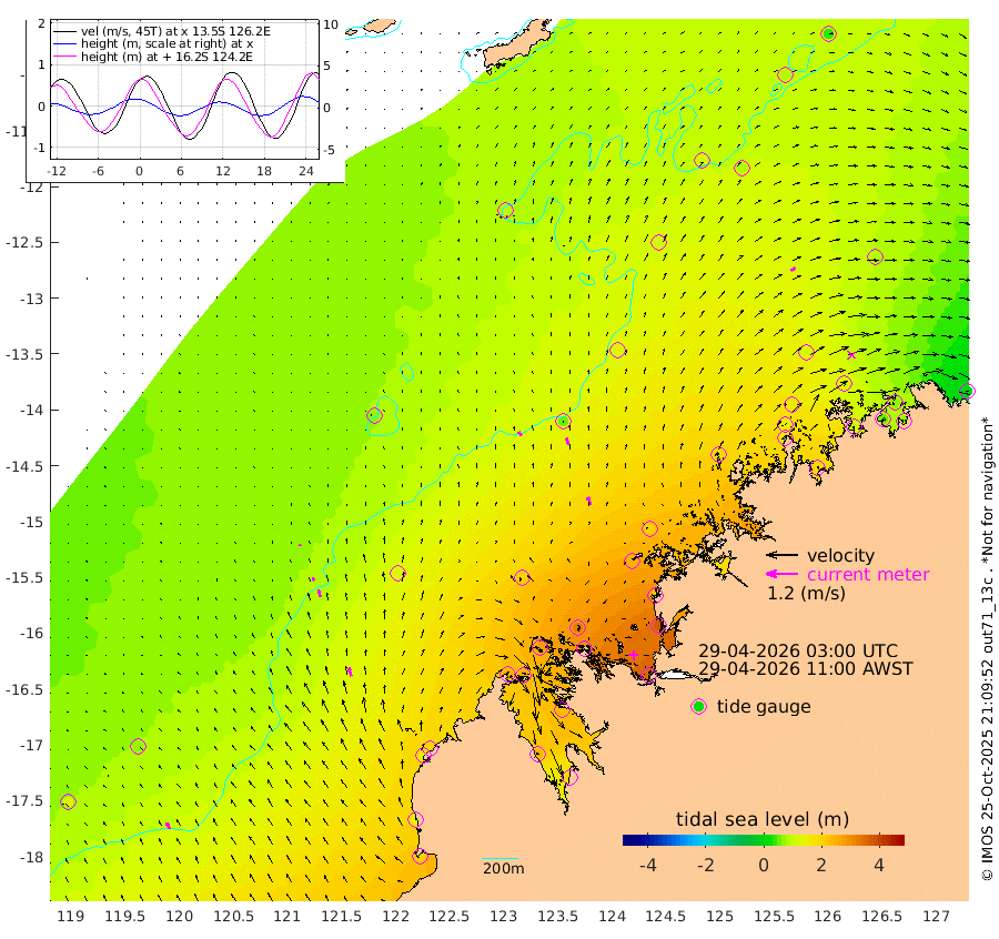 18cm/s -38T +10cm/s rms + 1cm/s 1T. NWSBRW 205m 26cm/s -23T +11cm/s rms + 6cm/s -110T. NWSROW 199m 31cm/s -22T +5cm/s rms + 2cm/s 65T. CAM050 58m 26cm/s -16T +12cm/s rms + 5cm/s 92T. CAM100 99m 7cm/s -17T +7cm/s rms + 1cm/s -85T. KIM400 396m 13cm/s -22T +9cm/s rms + 5cm/s -119T. KIM200 208m 29cm/s -17T +11cm/s rms + 5cm/s -147T. KIM100 99m 34cm/s -17T +8cm/s rms + 3cm/s -103T. KIM050 59m 19cm/s 54T +4cm/s rms + 2cm/s 23T. TIMORS88 91m 123cm Imperieuse Reef 72cm Mermaid Reef 203cm Broome 147cm Cape Baskerville 192cm Red Bluff 148cm Cape Boileau 73cm Scott Reef (WA) 104cm Ashmore Reef 250cm Karrakatta Bay 248cm Sunday Island 245cm Valentine Island 189cm Derby 239cm Port Usborne 279cm Bedford Islands 298cm Yampi Sound (Koolan Island) 323cm Macleay Island 204cm Adele Island 59cm Browse Island 360cm Shale Island 363cm Lizard Island 210cm Hall Point 251cm Degerando Island 207cm White Island 108cm Skua No. 4 Well 89cm Jabiru 182cm Maret Island 148cm Baudin Island 162cm Cape Voltaire (Krait Bay) 85cm Dillon Shoal 45cm Laminaria 190cm Port Warrender 126cm Troughton Island 157cm Cassini Island 109cm West Holothuria Reef Offshore 107cm Jar Island 129cm Lynher Bank 127cm Heywood Shoal 109cm Pee Shoal 77cm Van Cloon Shoal 61cm Carronade Island 55cm Guy Point 63cm Napier Broome Bay -3cm Lesueur Island