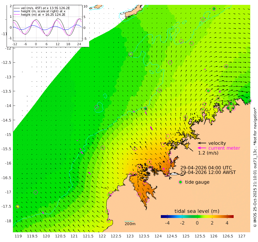 27cm/s -49T +10cm/s rms + 1cm/s 1T. NWSBRW 205m 35cm/s -35T +11cm/s rms + 6cm/s -110T. NWSROW 199m 61cm/s -30T +5cm/s rms + 2cm/s 65T. CAM050 58m 47cm/s -29T +12cm/s rms + 5cm/s 92T. CAM100 99m 10cm/s -45T +7cm/s rms + 1cm/s -85T. KIM400 396m 22cm/s -45T +9cm/s rms + 5cm/s -119T. KIM200 208m 43cm/s -36T +11cm/s rms + 5cm/s -147T. KIM100 99m 45cm/s -47T +8cm/s rms + 3cm/s -103T. KIM050 59m 23cm/s 50T +4cm/s rms + 2cm/s 23T. TIMORS88 91m 107cm Imperieuse Reef 12cm Mermaid Reef 84cm Broome 56cm Cape Baskerville 116cm Red Bluff 62cm Cape Boileau 16cm Scott Reef (WA) 52cm Ashmore Reef 202cm Karrakatta Bay 209cm Sunday Island 309cm Valentine Island 294cm Derby 283cm Port Usborne 200cm Bedford Islands 206cm Yampi Sound (Koolan Island) 198cm Macleay Island 111cm Adele Island -24cm Browse Island 274cm Shale Island 280cm Lizard Island 135cm Hall Point 155cm Degerando Island 105cm White Island 47cm Skua No. 4 Well 54cm Jabiru 84cm Maret Island 63cm Baudin Island 76cm Cape Voltaire (Krait Bay) 49cm Dillon Shoal -2cm Laminaria 103cm Port Warrender 70cm Troughton Island 74cm Cassini Island 44cm West Holothuria Reef Offshore 59cm Jar Island 58cm Lynher Bank 45cm Heywood Shoal 61cm Pee Shoal 49cm Van Cloon Shoal 24cm Carronade Island 15cm Guy Point 27cm Napier Broome Bay 1cm Lesueur Island
