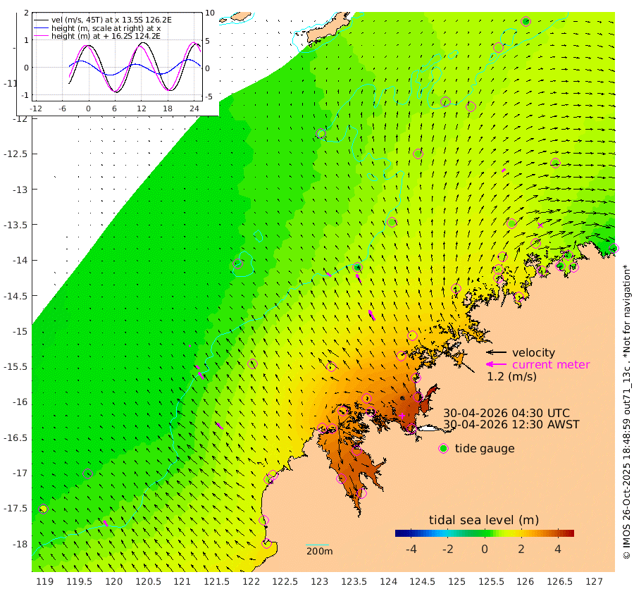 32cm/s -49T +10cm/s rms + 1cm/s 1T. NWSBRW 205m 40cm/s -35T +11cm/s rms + 6cm/s -110T. NWSROW 199m 71cm/s -31T +5cm/s rms + 2cm/s 65T. CAM050 58m 55cm/s -29T +12cm/s rms + 5cm/s 92T. CAM100 99m 12cm/s -44T +7cm/s rms + 1cm/s -85T. KIM400 396m 25cm/s -44T +9cm/s rms + 5cm/s -119T. KIM200 208m 49cm/s -36T +11cm/s rms + 5cm/s -147T. KIM100 99m 53cm/s -46T +8cm/s rms + 3cm/s -103T. KIM050 59m 26cm/s 44T +4cm/s rms + 2cm/s 23T. TIMORS88 91m 127cm Imperieuse Reef 19cm Mermaid Reef 109cm Broome 70cm Cape Baskerville 134cm Red Bluff 80cm Cape Boileau 23cm Scott Reef (WA) 62cm Ashmore Reef 241cm Karrakatta Bay 252cm Sunday Island 357cm Valentine Island 342cm Derby 335cm Port Usborne 238cm Bedford Islands 254cm Yampi Sound (Koolan Island) 244cm Macleay Island 135cm Adele Island -22cm Browse Island 337cm Shale Island 346cm Lizard Island 190cm Hall Point 191cm Degerando Island 138cm White Island 56cm Skua No. 4 Well 71cm Jabiru 104cm Maret Island 80cm Baudin Island 96cm Cape Voltaire (Krait Bay) 62cm Dillon Shoal -1cm Laminaria 130cm Port Warrender 85cm Troughton Island 88cm Cassini Island 56cm West Holothuria Reef Offshore 76cm Jar Island 75cm Lynher Bank 60cm Heywood Shoal 69cm Pee Shoal 59cm Van Cloon Shoal 34cm Carronade Island 25cm Guy Point 38cm Napier Broome Bay 5cm Lesueur Island