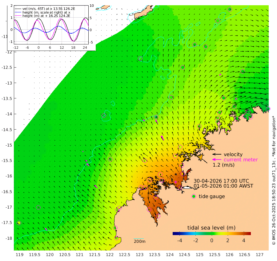 31cm/s -48T +10cm/s rms + 1cm/s 1T. NWSBRW 205m 39cm/s -38T +11cm/s rms + 6cm/s -110T. NWSROW 199m 73cm/s -30T +5cm/s rms + 2cm/s 65T. CAM050 58m 55cm/s -28T +12cm/s rms + 5cm/s 92T. CAM100 99m 11cm/s -44T +7cm/s rms + 1cm/s -85T. KIM400 396m 25cm/s -44T +9cm/s rms + 5cm/s -119T. KIM200 208m 46cm/s -39T +11cm/s rms + 5cm/s -147T. KIM100 99m 53cm/s -47T +8cm/s rms + 3cm/s -103T. KIM050 59m 29cm/s 54T +4cm/s rms + 2cm/s 23T. TIMORS88 91m 100cm Imperieuse Reef 1cm Mermaid Reef 67cm Broome 45cm Cape Baskerville 123cm Red Bluff 45cm Cape Boileau 0cm Scott Reef (WA) 31cm Ashmore Reef 226cm Karrakatta Bay 239cm Sunday Island 338cm Valentine Island 331cm Derby 315cm Port Usborne 213cm Bedford Islands 211cm Yampi Sound (Koolan Island) 195cm Macleay Island 96cm Adele Island -69cm Browse Island 299cm Shale Island 258cm Lizard Island 147cm Hall Point 144cm Degerando Island 92cm White Island 23cm Skua No. 4 Well 26cm Jabiru 53cm Maret Island 47cm Baudin Island 38cm Cape Voltaire (Krait Bay) 41cm Dillon Shoal -9cm Laminaria 62cm Port Warrender 17cm Troughton Island 31cm Cassini Island 9cm West Holothuria Reef Offshore 16cm Jar Island 41cm Lynher Bank 33cm Heywood Shoal 29cm Pee Shoal 6cm Van Cloon Shoal -33cm Carronade Island -32cm Guy Point -37cm Napier Broome Bay -73cm Lesueur Island