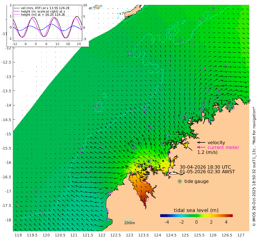 30cm/s -52T +10cm/s rms + 1cm/s 1T. NWSBRW 205m 32cm/s -49T +11cm/s rms + 6cm/s -110T. NWSROW 199m 82cm/s -35T +5cm/s rms + 2cm/s 65T. CAM050 58m 59cm/s -37T +12cm/s rms + 5cm/s 92T. CAM100 99m 12cm/s -66T +7cm/s rms + 1cm/s -85T. KIM400 396m 27cm/s -61T +9cm/s rms + 5cm/s -119T. KIM200 208m 48cm/s -55T +11cm/s rms + 5cm/s -147T. KIM100 99m 58cm/s -77T +8cm/s rms + 3cm/s -103T. KIM050 59m 26cm/s 56T +4cm/s rms + 2cm/s 23T. TIMORS88 91m 25cm Imperieuse Reef -89cm Mermaid Reef -172cm Broome -129cm Cape Baskerville -83cm Red Bluff -130cm Cape Boileau -84cm Scott Reef (WA) -63cm Ashmore Reef 29cm Karrakatta Bay 59cm Sunday Island 287cm Valentine Island 363cm Derby 249cm Port Usborne -22cm Bedford Islands -57cm Yampi Sound (Koolan Island) -106cm Macleay Island -104cm Adele Island -174cm Browse Island -2cm Shale Island -39cm Lizard Island -85cm Hall Point -96cm Degerando Island -133cm White Island -78cm Skua No. 4 Well -43cm Jabiru -137cm Maret Island -120cm Baudin Island -129cm Cape Voltaire (Krait Bay) -24cm Dillon Shoal -58cm Laminaria -126cm Port Warrender -80cm Troughton Island -124cm Cassini Island -100cm West Holothuria Reef Offshore -77cm Jar Island -92cm Lynher Bank -112cm Heywood Shoal -55cm Pee Shoal -43cm Van Cloon Shoal -79cm Carronade Island -81cm Guy Point -86cm Napier Broome Bay -28cm Lesueur Island