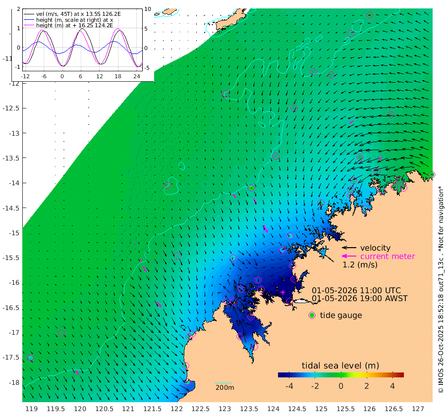 36cm/s 138T +10cm/s rms + 1cm/s 1T. NWSBRW 205m 39cm/s 150T +11cm/s rms + 6cm/s -110T. NWSROW 199m 69cm/s 152T +5cm/s rms + 2cm/s 65T. CAM050 58m 53cm/s 156T +12cm/s rms + 5cm/s 92T. CAM100 99m 11cm/s 148T +7cm/s rms + 1cm/s -85T. KIM400 396m 22cm/s 143T +9cm/s rms + 5cm/s -119T. KIM200 208m 45cm/s 149T +11cm/s rms + 5cm/s -147T. KIM100 99m 55cm/s 142T +8cm/s rms + 3cm/s -103T. KIM050 59m 35cm/s -124T +4cm/s rms + 2cm/s 23T. TIMORS88 91m -154cm Imperieuse Reef -61cm Mermaid Reef -170cm Broome -123cm Cape Baskerville -189cm Red Bluff -123cm Cape Boileau -59cm Scott Reef (WA) -103cm Ashmore Reef -304cm Karrakatta Bay -320cm Sunday Island -375cm Valentine Island -355cm Derby -367cm Port Usborne -305cm Bedford Islands -327cm Yampi Sound (Koolan Island) -319cm Macleay Island -192cm Adele Island 5cm Browse Island -422cm Shale Island -389cm Lizard Island -271cm Hall Point -251cm Degerando Island -202cm White Island -95cm Skua No. 4 Well -102cm Jabiru -155cm Maret Island -141cm Baudin Island -141cm Cape Voltaire (Krait Bay) -107cm Dillon Shoal -49cm Laminaria -177cm Port Warrender -121cm Troughton Island -131cm Cassini Island -99cm West Holothuria Reef Offshore -109cm Jar Island -121cm Lynher Bank -117cm Heywood Shoal -103cm Pee Shoal -83cm Van Cloon Shoal -57cm Carronade Island -59cm Guy Point -53cm Napier Broome Bay -15cm Lesueur Island
