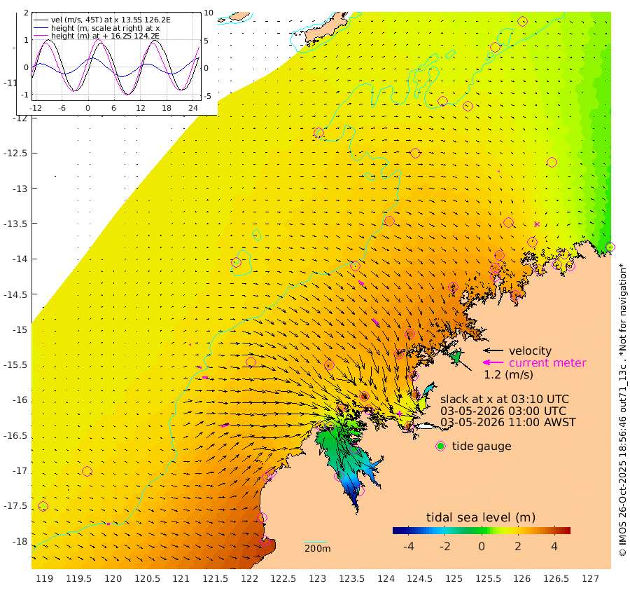 9cm/s 65T +10cm/s rms + 1cm/s 1T. NWSBRW 205m 15cm/s 96T +11cm/s rms + 6cm/s -110T. NWSROW 199m 51cm/s 136T +5cm/s rms + 2cm/s 65T. CAM050 58m 36cm/s 123T +12cm/s rms + 5cm/s 92T. CAM100 99m 10cm/s 82T +7cm/s rms + 1cm/s -85T. KIM400 396m 20cm/s 97T +9cm/s rms + 5cm/s -119T. KIM200 208m 32cm/s 95T +11cm/s rms + 5cm/s -147T. KIM100 99m 49cm/s 65T +8cm/s rms + 3cm/s -103T. KIM050 59m 4cm/s -157T +4cm/s rms + 2cm/s 23T. TIMORS88 91m 105cm Imperieuse Reef 176cm Mermaid Reef 379cm Broome 287cm Cape Baskerville 296cm Red Bluff 285cm Cape Boileau 162cm Scott Reef (WA) 181cm Ashmore Reef 236cm Karrakatta Bay 201cm Sunday Island -83cm Valentine Island -193cm Derby -34cm Port Usborne 289cm Bedford Islands 361cm Yampi Sound (Koolan Island) 393cm Macleay Island 298cm Adele Island 218cm Browse Island 374cm Shale Island 358cm Lizard Island 374cm Hall Point 347cm Degerando Island 355cm White Island 189cm Skua No. 4 Well 154cm Jabiru 320cm Maret Island 302cm Baudin Island 301cm Cape Voltaire (Krait Bay) 138cm Dillon Shoal 127cm Laminaria 326cm Port Warrender 222cm Troughton Island 290cm Cassini Island 230cm West Holothuria Reef Offshore 215cm Jar Island 224cm Lynher Bank 263cm Heywood Shoal 164cm Pee Shoal 142cm Van Cloon Shoal 172cm Carronade Island 176cm Guy Point 177cm Napier Broome Bay 79cm Lesueur Island