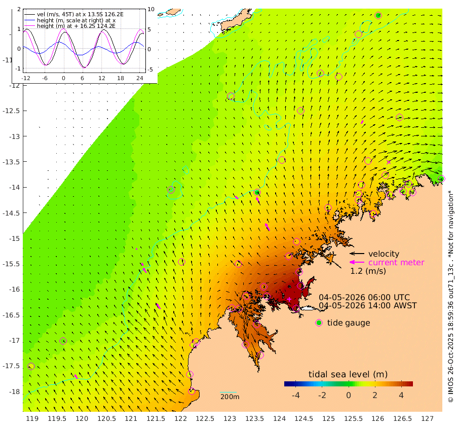 34cm/s -45T +10cm/s rms + 1cm/s 1T. NWSBRW 205m 40cm/s -32T +11cm/s rms + 6cm/s -110T. NWSROW 199m 68cm/s -32T +5cm/s rms + 2cm/s 65T. CAM050 58m 54cm/s -28T +12cm/s rms + 5cm/s 92T. CAM100 99m 11cm/s -36T +7cm/s rms + 1cm/s -85T. KIM400 396m 23cm/s -39T +9cm/s rms + 5cm/s -119T. KIM200 208m 46cm/s -33T +11cm/s rms + 5cm/s -147T. KIM100 99m 55cm/s -37T +8cm/s rms + 3cm/s -103T. KIM050 59m 29cm/s 33T +4cm/s rms + 2cm/s 23T. TIMORS88 91m 150cm Imperieuse Reef 54cm Mermaid Reef 180cm Broome 121cm Cape Baskerville 187cm Red Bluff 135cm Cape Boileau 51cm Scott Reef (WA) 93cm Ashmore Reef 303cm Karrakatta Bay 314cm Sunday Island 365cm Valentine Island 339cm Derby 355cm Port Usborne 284cm Bedford Islands 339cm Yampi Sound (Koolan Island) 335cm Macleay Island 193cm Adele Island 14cm Browse Island 438cm Shale Island 433cm Lizard Island 374cm Hall Point 259cm Degerando Island 226cm White Island 83cm Skua No. 4 Well 119cm Jabiru 157cm Maret Island 148cm Baudin Island 149cm Cape Voltaire (Krait Bay) 99cm Dillon Shoal 22cm Laminaria 198cm Port Warrender 127cm Troughton Island 132cm Cassini Island 107cm West Holothuria Reef Offshore 128cm Jar Island 118cm Lynher Bank 109cm Heywood Shoal 89cm Pee Shoal 89cm Van Cloon Shoal 76cm Carronade Island 73cm Guy Point 81cm Napier Broome Bay 34cm Lesueur Island
