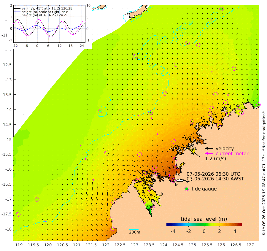 21cm/s -38T +10cm/s rms + 1cm/s 1T. NWSBRW 205m 20cm/s -22T +11cm/s rms + 6cm/s -110T. NWSROW 199m 24cm/s -31T +5cm/s rms + 2cm/s 65T. CAM050 58m 21cm/s -17T +12cm/s rms + 5cm/s 92T. CAM100 99m 6cm/s -8T +7cm/s rms + 1cm/s -85T. KIM400 396m 9cm/s -16T +9cm/s rms + 5cm/s -119T. KIM200 208m 20cm/s -15T +11cm/s rms + 5cm/s -147T. KIM100 99m 31cm/s -11T +8cm/s rms + 3cm/s -103T. KIM050 59m 19cm/s 27T +4cm/s rms + 2cm/s 23T. TIMORS88 91m 121cm Imperieuse Reef 82cm Mermaid Reef 212cm Broome 155cm Cape Baskerville 202cm Red Bluff 161cm Cape Boileau 73cm Scott Reef (WA) 109cm Ashmore Reef 255cm Karrakatta Bay 231cm Sunday Island 196cm Valentine Island 135cm Derby 191cm Port Usborne 234cm Bedford Islands 298cm Yampi Sound (Koolan Island) 294cm Macleay Island 188cm Adele Island 68cm Browse Island 372cm Shale Island 369cm Lizard Island 379cm Hall Point 244cm Degerando Island 233cm White Island 105cm Skua No. 4 Well 130cm Jabiru 181cm Maret Island 181cm Baudin Island 172cm Cape Voltaire (Krait Bay) 98cm Dillon Shoal 52cm Laminaria 204cm Port Warrender 145cm Troughton Island 162cm Cassini Island 131cm West Holothuria Reef Offshore 147cm Jar Island 127cm Lynher Bank 139cm Heywood Shoal 99cm Pee Shoal 99cm Van Cloon Shoal 100cm Carronade Island 99cm Guy Point 108cm Napier Broome Bay 57cm Lesueur Island