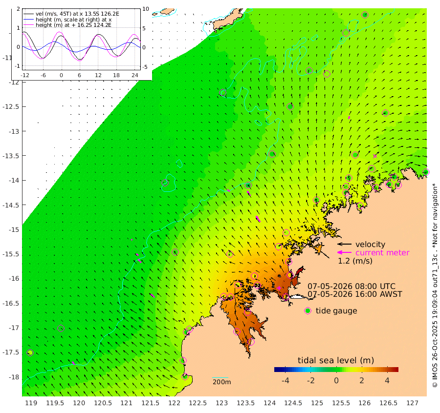 27cm/s -51T +10cm/s rms + 1cm/s 1T. NWSBRW 205m 32cm/s -39T +11cm/s rms + 6cm/s -110T. NWSROW 199m 62cm/s -34T +5cm/s rms + 2cm/s 65T. CAM050 58m 48cm/s -33T +12cm/s rms + 5cm/s 92T. CAM100 99m 10cm/s -47T +7cm/s rms + 1cm/s -85T. KIM400 396m 21cm/s -48T +9cm/s rms + 5cm/s -119T. KIM200 208m 39cm/s -42T +11cm/s rms + 5cm/s -147T. KIM100 99m 44cm/s -51T +8cm/s rms + 3cm/s -103T. KIM050 59m 26cm/s 24T +4cm/s rms + 2cm/s 23T. TIMORS88 91m 89cm Imperieuse Reef 0cm Mermaid Reef 40cm Broome 25cm Cape Baskerville 70cm Red Bluff 36cm Cape Boileau 1cm Scott Reef (WA) 31cm Ashmore Reef 182cm Karrakatta Bay 189cm Sunday Island 323cm Valentine Island 321cm Derby 287cm Port Usborne 130cm Bedford Islands 166cm Yampi Sound (Koolan Island) 170cm Macleay Island 77cm Adele Island -35cm Browse Island 244cm Shale Island 239cm Lizard Island 243cm Hall Point 105cm Degerando Island 89cm White Island 23cm Skua No. 4 Well 70cm Jabiru 40cm Maret Island 50cm Baudin Island 39cm Cape Voltaire (Krait Bay) 53cm Dillon Shoal -8cm Laminaria 73cm Port Warrender 56cm Troughton Island 35cm Cassini Island 37cm West Holothuria Reef Offshore 57cm Jar Island 31cm Lynher Bank 19cm Heywood Shoal 34cm Pee Shoal 45cm Van Cloon Shoal 27cm Carronade Island 26cm Guy Point 32cm Napier Broome Bay 25cm Lesueur Island