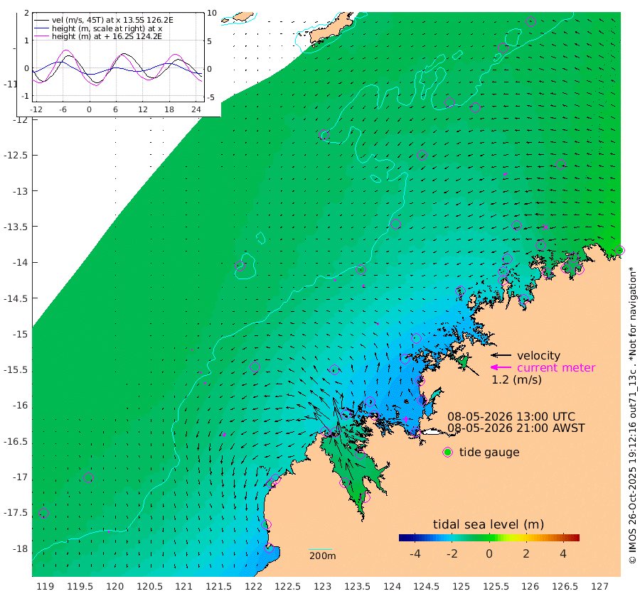 12cm/s 155T +10cm/s rms + 1cm/s 1T. NWSBRW 205m 9cm/s 174T +11cm/s rms + 6cm/s -110T. NWSROW 199m 10cm/s -143T +5cm/s rms + 2cm/s 65T. CAM050 58m 13cm/s -136T +12cm/s rms + 5cm/s 92T. CAM100 99m 4cm/s -138T +7cm/s rms + 1cm/s -85T. KIM400 396m 7cm/s -148T +9cm/s rms + 5cm/s -119T. KIM200 208m 12cm/s -158T +11cm/s rms + 5cm/s -147T. KIM100 99m 22cm/s -159T +8cm/s rms + 3cm/s -103T. KIM050 59m 21cm/s -117T +4cm/s rms + 2cm/s 23T. TIMORS88 91m -92cm Imperieuse Reef -87cm Mermaid Reef -186cm Broome -130cm Cape Baskerville -168cm Red Bluff -127cm Cape Boileau -77cm Scott Reef (WA) -104cm Ashmore Reef -188cm Karrakatta Bay -168cm Sunday Island -97cm Valentine Island -49cm Derby -115cm Port Usborne -185cm Bedford Islands -235cm Yampi Sound (Koolan Island) -228cm Macleay Island -159cm Adele Island -65cm Browse Island -291cm Shale Island -312cm Lizard Island -298cm Hall Point -196cm Degerando Island -189cm White Island -102cm Skua No. 4 Well -107cm Jabiru -159cm Maret Island -144cm Baudin Island -146cm Cape Voltaire (Krait Bay) -79cm Dillon Shoal -79cm Laminaria -153cm Port Warrender -109cm Troughton Island -137cm Cassini Island -107cm West Holothuria Reef Offshore -109cm Jar Island -119cm Lynher Bank -131cm Heywood Shoal -93cm Pee Shoal -74cm Van Cloon Shoal -72cm Carronade Island -70cm Guy Point -76cm Napier Broome Bay -21cm Lesueur Island