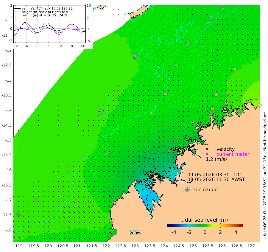 17cm/s 124T +10cm/s rms + 1cm/s 1T. NWSBRW 205m 17cm/s 138T +11cm/s rms + 6cm/s -110T. NWSROW 199m 37cm/s 142T +5cm/s rms + 2cm/s 65T. CAM050 58m 28cm/s 137T +12cm/s rms + 5cm/s 92T. CAM100 99m 5cm/s 125T +7cm/s rms + 1cm/s -85T. KIM400 396m 11cm/s 126T +9cm/s rms + 5cm/s -119T. KIM200 208m 21cm/s 131T +11cm/s rms + 5cm/s -147T. KIM100 99m 26cm/s 112T +8cm/s rms + 3cm/s -103T. KIM050 59m 13cm/s -161T +4cm/s rms + 2cm/s 23T. TIMORS88 91m -6cm Imperieuse Reef 40cm Mermaid Reef 45cm Broome 43cm Cape Baskerville 22cm Red Bluff 52cm Cape Boileau 39cm Scott Reef (WA) 32cm Ashmore Reef -53cm Karrakatta Bay -57cm Sunday Island -165cm Valentine Island -183cm Derby -152cm Port Usborne -16cm Bedford Islands -26cm Yampi Sound (Koolan Island) -54cm Macleay Island 6cm Adele Island 57cm Browse Island -73cm Shale Island -36cm Lizard Island -69cm Hall Point 14cm Degerando Island 19cm White Island 38cm Skua No. 4 Well 27cm Jabiru 47cm Maret Island 38cm Baudin Island 57cm Cape Voltaire (Krait Bay) 17cm Dillon Shoal 42cm Laminaria 55cm Port Warrender 52cm Troughton Island 55cm Cassini Island 47cm West Holothuria Reef Offshore 51cm Jar Island 38cm Lynher Bank 57cm Heywood Shoal 38cm Pee Shoal 52cm Van Cloon Shoal 73cm Carronade Island 74cm Guy Point 83cm Napier Broome Bay 90cm Lesueur Island