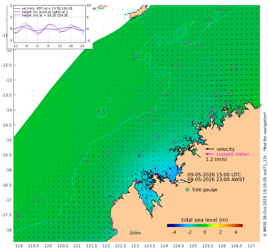 15cm/s 142T +10cm/s rms + 1cm/s 1T. NWSBRW 205m 13cm/s 157T +11cm/s rms + 6cm/s -110T. NWSROW 199m 21cm/s 166T +5cm/s rms + 2cm/s 65T. CAM050 58m 16cm/s 171T +12cm/s rms + 5cm/s 92T. CAM100 99m 3cm/s -177T +7cm/s rms + 1cm/s -85T. KIM400 396m 7cm/s 152T +9cm/s rms + 5cm/s -119T. KIM200 208m 15cm/s 156T +11cm/s rms + 5cm/s -147T. KIM100 99m 15cm/s 156T +8cm/s rms + 3cm/s -103T. KIM050 59m 23cm/s -126T +4cm/s rms + 2cm/s 23T. TIMORS88 91m -72cm Imperieuse Reef -44cm Mermaid Reef -80cm Broome -54cm Cape Baskerville -82cm Red Bluff -58cm Cape Boileau -44cm Scott Reef (WA) -65cm Ashmore Reef -133cm Karrakatta Bay -133cm Sunday Island -171cm Valentine Island -159cm Derby -164cm Port Usborne -108cm Bedford Islands -142cm Yampi Sound (Koolan Island) -157cm Macleay Island -97cm Adele Island -18cm Browse Island -190cm Shale Island -220cm Lizard Island -190cm Hall Point -104cm Degerando Island -99cm White Island -65cm Skua No. 4 Well -81cm Jabiru -78cm Maret Island -66cm Baudin Island -72cm Cape Voltaire (Krait Bay) -66cm Dillon Shoal -55cm Laminaria -79cm Port Warrender -72cm Troughton Island -71cm Cassini Island -65cm West Holothuria Reef Offshore -66cm Jar Island -64cm Lynher Bank -66cm Heywood Shoal -70cm Pee Shoal -59cm Van Cloon Shoal -46cm Carronade Island -45cm Guy Point -53cm Napier Broome Bay -24cm Lesueur Island
