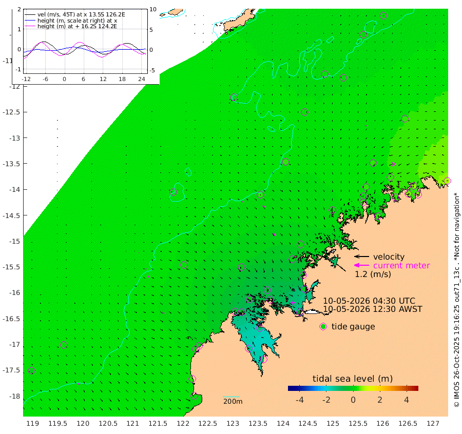 9cm/s 117T +10cm/s rms + 1cm/s 1T. NWSBRW 205m 11cm/s 138T +11cm/s rms + 6cm/s -110T. NWSROW 199m 22cm/s 143T +5cm/s rms + 2cm/s 65T. CAM050 58m 16cm/s 137T +12cm/s rms + 5cm/s 92T. CAM100 99m 2cm/s 132T +7cm/s rms + 1cm/s -85T. KIM400 396m 6cm/s 130T +9cm/s rms + 5cm/s -119T. KIM200 208m 12cm/s 134T +11cm/s rms + 5cm/s -147T. KIM100 99m 15cm/s 116T +8cm/s rms + 3cm/s -103T. KIM050 59m 9cm/s -159T +4cm/s rms + 2cm/s 23T. TIMORS88 91m 0cm Imperieuse Reef 25cm Mermaid Reef 29cm Broome 23cm Cape Baskerville 13cm Red Bluff 37cm Cape Boileau 24cm Scott Reef (WA) 19cm Ashmore Reef -41cm Karrakatta Bay -40cm Sunday Island -125cm Valentine Island -130cm Derby -109cm Port Usborne -15cm Bedford Islands -18cm Yampi Sound (Koolan Island) -59cm Macleay Island -7cm Adele Island 33cm Browse Island -50cm Shale Island -6cm Lizard Island -32cm Hall Point 11cm Degerando Island 13cm White Island 20cm Skua No. 4 Well 26cm Jabiru 29cm Maret Island 22cm Baudin Island 42cm Cape Voltaire (Krait Bay) 8cm Dillon Shoal 23cm Laminaria 43cm Port Warrender 37cm Troughton Island 35cm Cassini Island 30cm West Holothuria Reef Offshore 42cm Jar Island 27cm Lynher Bank 40cm Heywood Shoal 22cm Pee Shoal 42cm Van Cloon Shoal 61cm Carronade Island 61cm Guy Point 73cm Napier Broome Bay 80cm Lesueur Island