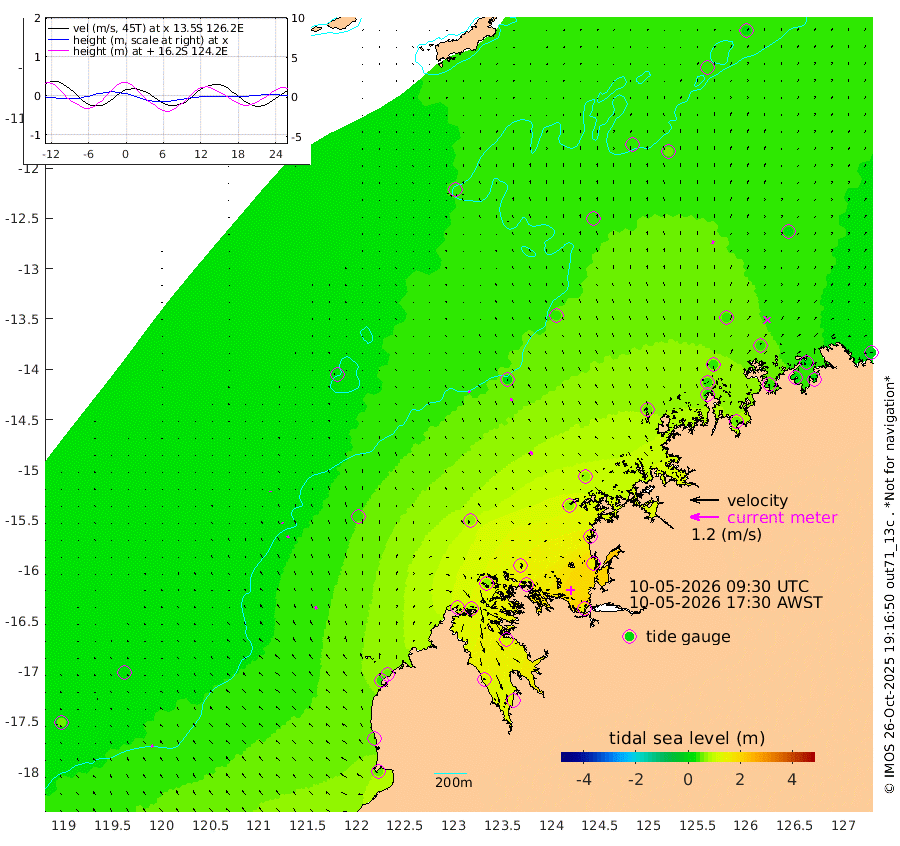 8cm/s -48T +10cm/s rms + 1cm/s 1T. NWSBRW 205m 9cm/s -35T +11cm/s rms + 6cm/s -110T. NWSROW 199m 14cm/s -30T +5cm/s rms + 2cm/s 65T. CAM050 58m 12cm/s -27T +12cm/s rms + 5cm/s 92T. CAM100 99m 2cm/s -19T +7cm/s rms + 1cm/s -85T. KIM400 396m 5cm/s -33T +9cm/s rms + 5cm/s -119T. KIM200 208m 10cm/s -28T +11cm/s rms + 5cm/s -147T. KIM100 99m 11cm/s -23T +8cm/s rms + 3cm/s -103T. KIM050 59m 13cm/s 12T +4cm/s rms + 2cm/s 23T. TIMORS88 91m 46cm Imperieuse Reef 20cm Mermaid Reef 53cm Broome 39cm Cape Baskerville 52cm Red Bluff 45cm Cape Boileau 21cm Scott Reef (WA) 32cm Ashmore Reef 99cm Karrakatta Bay 85cm Sunday Island 134cm Valentine Island 111cm Derby 116cm Port Usborne 67cm Bedford Islands 96cm Yampi Sound (Koolan Island) 123cm Macleay Island 63cm Adele Island 17cm Browse Island 136cm Shale Island 149cm Lizard Island 128cm Hall Point 69cm Degerando Island 66cm White Island 39cm Skua No. 4 Well 51cm Jabiru 46cm Maret Island 44cm Baudin Island 43cm Cape Voltaire (Krait Bay) 40cm Dillon Shoal 16cm Laminaria 50cm Port Warrender 44cm Troughton Island 43cm Cassini Island 37cm West Holothuria Reef Offshore 40cm Jar Island 30cm Lynher Bank 38cm Heywood Shoal 36cm Pee Shoal 29cm Van Cloon Shoal 20cm Carronade Island 21cm Guy Point 27cm Napier Broome Bay -1cm Lesueur Island