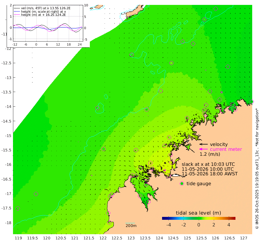 1cm/s 0T +10cm/s rms + 1cm/s 1T. NWSBRW 205m 1cm/s 30T +11cm/s rms + 6cm/s -110T. NWSROW 199m 6cm/s 125T +5cm/s rms + 2cm/s 65T. CAM050 58m 3cm/s 104T +12cm/s rms + 5cm/s 92T. CAM100 99m 2cm/s 66T +7cm/s rms + 1cm/s -85T. KIM400 396m 3cm/s 82T +9cm/s rms + 5cm/s -119T. KIM200 208m 4cm/s 73T +11cm/s rms + 5cm/s -147T. KIM100 99m 10cm/s 58T +8cm/s rms + 3cm/s -103T. KIM050 59m 7cm/s -4T +4cm/s rms + 2cm/s 23T. TIMORS88 91m 31cm Imperieuse Reef 33cm Mermaid Reef 73cm Broome 52cm Cape Baskerville 53cm Red Bluff 59cm Cape Boileau 34cm Scott Reef (WA) 36cm Ashmore Reef 72cm Karrakatta Bay 54cm Sunday Island 46cm Valentine Island 16cm Derby 44cm Port Usborne 57cm Bedford Islands 83cm Yampi Sound (Koolan Island) 117cm Macleay Island 68cm Adele Island 44cm Browse Island 107cm Shale Island 126cm Lizard Island 87cm Hall Point 69cm Degerando Island 70cm White Island 48cm Skua No. 4 Well 44cm Jabiru 59cm Maret Island 49cm Baudin Island 54cm Cape Voltaire (Krait Bay) 36cm Dillon Shoal 27cm Laminaria 51cm Port Warrender 41cm Troughton Island 53cm Cassini Island 41cm West Holothuria Reef Offshore 36cm Jar Island 40cm Lynher Bank 53cm Heywood Shoal 39cm Pee Shoal 23cm Van Cloon Shoal 19cm Carronade Island 21cm Guy Point 27cm Napier Broome Bay -15cm Lesueur Island