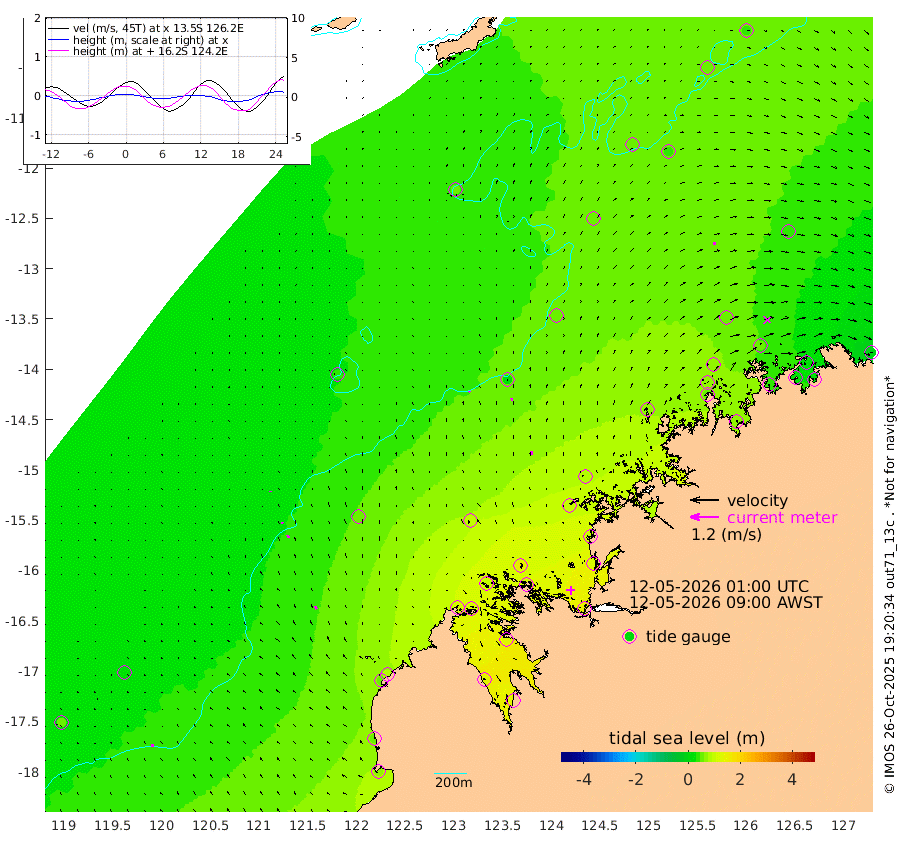 6cm/s -28T +10cm/s rms + 1cm/s 1T. NWSBRW 205m 11cm/s -18T +11cm/s rms + 6cm/s -110T. NWSROW 199m 14cm/s -17T +5cm/s rms + 2cm/s 65T. CAM050 58m 10cm/s -8T +12cm/s rms + 5cm/s 92T. CAM100 99m 3cm/s -8T +7cm/s rms + 1cm/s -85T. KIM400 396m 5cm/s -28T +9cm/s rms + 5cm/s -119T. KIM200 208m 13cm/s -23T +11cm/s rms + 5cm/s -147T. KIM100 99m 13cm/s -20T +8cm/s rms + 3cm/s -103T. KIM050 59m 12cm/s 75T +4cm/s rms + 2cm/s 23T. TIMORS88 91m 49cm Imperieuse Reef 29cm Mermaid Reef 68cm Broome 52cm Cape Baskerville 83cm Red Bluff 49cm Cape Boileau 30cm Scott Reef (WA) 51cm Ashmore Reef 108cm Karrakatta Bay 115cm Sunday Island 132cm Valentine Island 125cm Derby 125cm Port Usborne 105cm Bedford Islands 117cm Yampi Sound (Koolan Island) 153cm Macleay Island 97cm Adele Island 20cm Browse Island 138cm Shale Island 119cm Lizard Island 98cm Hall Point 90cm Degerando Island 78cm White Island 48cm Skua No. 4 Well 36cm Jabiru 70cm Maret Island 60cm Baudin Island 56cm Cape Voltaire (Krait Bay) 51cm Dillon Shoal 30cm Laminaria 67cm Port Warrender 53cm Troughton Island 66cm Cassini Island 54cm West Holothuria Reef Offshore 41cm Jar Island 46cm Lynher Bank 45cm Heywood Shoal 56cm Pee Shoal 39cm Van Cloon Shoal 23cm Carronade Island 19cm Guy Point 22cm Napier Broome Bay -5cm Lesueur Island