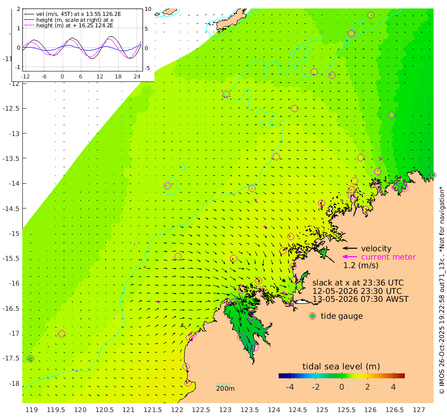 7cm/s 106T +10cm/s rms + 1cm/s 1T. NWSBRW 205m 9cm/s 106T +11cm/s rms + 6cm/s -110T. NWSROW 199m 29cm/s 130T +5cm/s rms + 2cm/s 65T. CAM050 58m 22cm/s 123T +12cm/s rms + 5cm/s 92T. CAM100 99m 7cm/s 91T +7cm/s rms + 1cm/s -85T. KIM400 396m 11cm/s 98T +9cm/s rms + 5cm/s -119T. KIM200 208m 18cm/s 98T +11cm/s rms + 5cm/s -147T. KIM100 99m 25cm/s 76T +8cm/s rms + 3cm/s -103T. KIM050 59m 2cm/s 115T +4cm/s rms + 2cm/s 23T. TIMORS88 91m 43cm Imperieuse Reef 83cm Mermaid Reef 163cm Broome 124cm Cape Baskerville 107cm Red Bluff 108cm Cape Boileau 79cm Scott Reef (WA) 89cm Ashmore Reef 107cm Karrakatta Bay 82cm Sunday Island -20cm Valentine Island -68cm Derby 7cm Port Usborne 128cm Bedford Islands 150cm Yampi Sound (Koolan Island) 204cm Macleay Island 144cm Adele Island 110cm Browse Island 162cm Shale Island 142cm Lizard Island 110cm Hall Point 141cm Degerando Island 143cm White Island 99cm Skua No. 4 Well 60cm Jabiru 143cm Maret Island 131cm Baudin Island 123cm Cape Voltaire (Krait Bay) 62cm Dillon Shoal 74cm Laminaria 113cm Port Warrender 97cm Troughton Island 130cm Cassini Island 98cm West Holothuria Reef Offshore 80cm Jar Island 98cm Lynher Bank 106cm Heywood Shoal 84cm Pee Shoal 51cm Van Cloon Shoal 53cm Carronade Island 53cm Guy Point 49cm Napier Broome Bay 8cm Lesueur Island