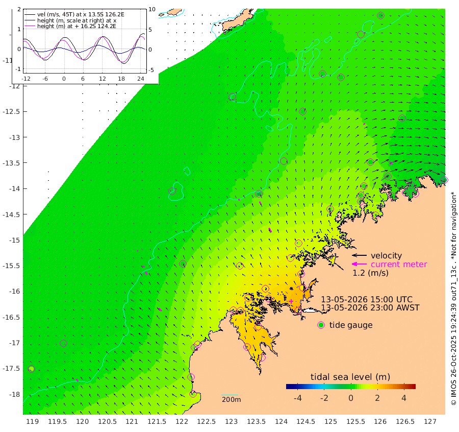 15cm/s -43T +10cm/s rms + 1cm/s 1T. NWSBRW 205m 23cm/s -36T +11cm/s rms + 6cm/s -110T. NWSROW 199m 39cm/s -30T +5cm/s rms + 2cm/s 65T. CAM050 58m 29cm/s -29T +12cm/s rms + 5cm/s 92T. CAM100 99m 7cm/s -43T +7cm/s rms + 1cm/s -85T. KIM400 396m 14cm/s -43T +9cm/s rms + 5cm/s -119T. KIM200 208m 26cm/s -36T +11cm/s rms + 5cm/s -147T. KIM100 99m 30cm/s -41T +8cm/s rms + 3cm/s -103T. KIM050 59m 15cm/s 60T +4cm/s rms + 2cm/s 23T. TIMORS88 91m 61cm Imperieuse Reef 6cm Mermaid Reef 60cm Broome 47cm Cape Baskerville 117cm Red Bluff 46cm Cape Boileau 4cm Scott Reef (WA) 27cm Ashmore Reef 153cm Karrakatta Bay 151cm Sunday Island 221cm Valentine Island 195cm Derby 184cm Port Usborne 136cm Bedford Islands 148cm Yampi Sound (Koolan Island) 158cm Macleay Island 84cm Adele Island -30cm Browse Island 198cm Shale Island 161cm Lizard Island 144cm Hall Point 103cm Degerando Island 76cm White Island 24cm Skua No. 4 Well 21cm Jabiru 51cm Maret Island 44cm Baudin Island 38cm Cape Voltaire (Krait Bay) 38cm Dillon Shoal -4cm Laminaria 61cm Port Warrender 19cm Troughton Island 39cm Cassini Island 21cm West Holothuria Reef Offshore 15cm Jar Island 26cm Lynher Bank 38cm Heywood Shoal 29cm Pee Shoal 7cm Van Cloon Shoal -19cm Carronade Island -17cm Guy Point -22cm Napier Broome Bay -68cm Lesueur Island