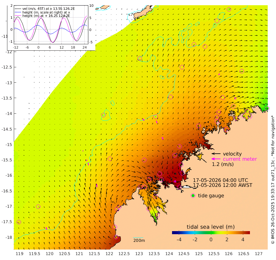29cm/s -35T +10cm/s rms + 1cm/s 1T. NWSBRW 205m 32cm/s -21T +11cm/s rms + 6cm/s -110T. NWSROW 199m 35cm/s -27T +5cm/s rms + 2cm/s 65T. CAM050 58m 32cm/s -16T +12cm/s rms + 5cm/s 92T. CAM100 99m 9cm/s -10T +7cm/s rms + 1cm/s -85T. KIM400 396m 16cm/s -15T +9cm/s rms + 5cm/s -119T. KIM200 208m 34cm/s -12T +11cm/s rms + 5cm/s -147T. KIM100 99m 47cm/s -11T +8cm/s rms + 3cm/s -103T. KIM050 59m 22cm/s 35T +4cm/s rms + 2cm/s 23T. TIMORS88 91m 183cm Imperieuse Reef 122cm Mermaid Reef 326cm Broome 238cm Cape Baskerville 297cm Red Bluff 241cm Cape Boileau 117cm Scott Reef (WA) 169cm Ashmore Reef 381cm Karrakatta Bay 349cm Sunday Island 306cm Valentine Island 214cm Derby 305cm Port Usborne 388cm Bedford Islands 449cm Yampi Sound (Koolan Island) 476cm Macleay Island 304cm Adele Island 113cm Browse Island 548cm Shale Island 535cm Lizard Island 432cm Hall Point 378cm Degerando Island 334cm White Island 172cm Skua No. 4 Well 166cm Jabiru 288cm Maret Island 261cm Baudin Island 263cm Cape Voltaire (Krait Bay) 142cm Dillon Shoal 76cm Laminaria 301cm Port Warrender 215cm Troughton Island 257cm Cassini Island 188cm West Holothuria Reef Offshore 198cm Jar Island 195cm Lynher Bank 208cm Heywood Shoal 164cm Pee Shoal 134cm Van Cloon Shoal 124cm Carronade Island 119cm Guy Point 130cm Napier Broome Bay 42cm Lesueur Island