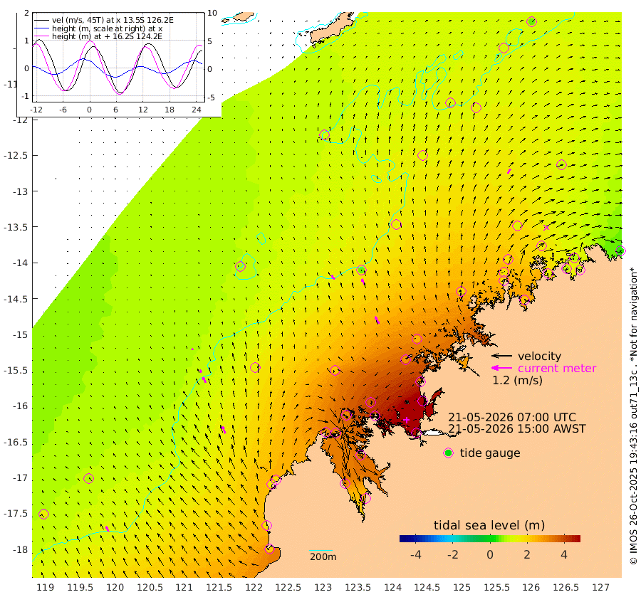 30cm/s -41T +10cm/s rms + 1cm/s 1T. NWSBRW 205m 34cm/s -28T +11cm/s rms + 6cm/s -110T. NWSROW 199m 48cm/s -29T +5cm/s rms + 2cm/s 65T. CAM050 58m 41cm/s -24T +12cm/s rms + 5cm/s 92T. CAM100 99m 9cm/s -24T +7cm/s rms + 1cm/s -85T. KIM400 396m 18cm/s -29T +9cm/s rms + 5cm/s -119T. KIM200 208m 36cm/s -25T +11cm/s rms + 5cm/s -147T. KIM100 99m 45cm/s -24T +8cm/s rms + 3cm/s -103T. KIM050 59m 30cm/s 31T +4cm/s rms + 2cm/s 23T. TIMORS88 91m 159cm Imperieuse Reef 81cm Mermaid Reef 222cm Broome 153cm Cape Baskerville 195cm Red Bluff 171cm Cape Boileau 82cm Scott Reef (WA) 117cm Ashmore Reef 311cm Karrakatta Bay 306cm Sunday Island 320cm Valentine Island 278cm Derby 326cm Port Usborne 301cm Bedford Islands 354cm Yampi Sound (Koolan Island) 366cm Macleay Island 218cm Adele Island 53cm Browse Island 454cm Shale Island 469cm Lizard Island 345cm Hall Point 286cm Degerando Island 247cm White Island 122cm Skua No. 4 Well 139cm Jabiru 192cm Maret Island 169cm Baudin Island 184cm Cape Voltaire (Krait Bay) 116cm Dillon Shoal 52cm Laminaria 215cm Port Warrender 152cm Troughton Island 166cm Cassini Island 126cm West Holothuria Reef Offshore 143cm Jar Island 145cm Lynher Bank 149cm Heywood Shoal 118cm Pee Shoal 101cm Van Cloon Shoal 89cm Carronade Island 90cm Guy Point 100cm Napier Broome Bay 32cm Lesueur Island