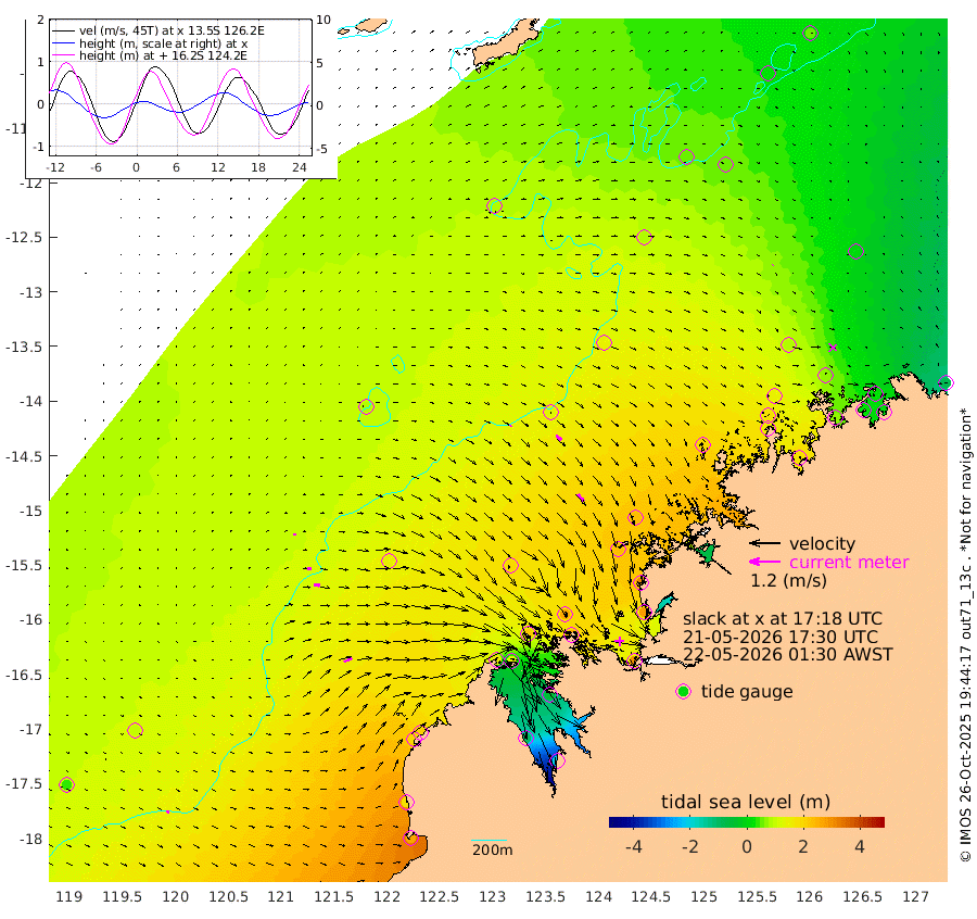 5cm/s 26T +10cm/s rms + 1cm/s 1T. NWSBRW 205m 10cm/s 94T +11cm/s rms + 6cm/s -110T. NWSROW 199m 37cm/s 141T +5cm/s rms + 2cm/s 65T. CAM050 58m 26cm/s 130T +12cm/s rms + 5cm/s 92T. CAM100 99m 9cm/s 91T +7cm/s rms + 1cm/s -85T. KIM400 396m 16cm/s 95T +9cm/s rms + 5cm/s -119T. KIM200 208m 26cm/s 99T +11cm/s rms + 5cm/s -147T. KIM100 99m 35cm/s 66T +8cm/s rms + 3cm/s -103T. KIM050 59m 3cm/s -132T +4cm/s rms + 2cm/s 23T. TIMORS88 91m 40cm Imperieuse Reef 99cm Mermaid Reef 266cm Broome 185cm Cape Baskerville 197cm Red Bluff 165cm Cape Boileau 83cm Scott Reef (WA) 80cm Ashmore Reef 156cm Karrakatta Bay 121cm Sunday Island -102cm Valentine Island -203cm Derby -51cm Port Usborne 216cm Bedford Islands 256cm Yampi Sound (Koolan Island) 268cm Macleay Island 183cm Adele Island 128cm Browse Island 288cm Shale Island 280cm Lizard Island 303cm Hall Point 236cm Degerando Island 237cm White Island 84cm Skua No. 4 Well 54cm Jabiru 195cm Maret Island 175cm Baudin Island 164cm Cape Voltaire (Krait Bay) 19cm Dillon Shoal 46cm Laminaria 168cm Port Warrender 62cm Troughton Island 140cm Cassini Island 87cm West Holothuria Reef Offshore 70cm Jar Island 140cm Lynher Bank 138cm Heywood Shoal 47cm Pee Shoal 3cm Van Cloon Shoal 16cm Carronade Island 16cm Guy Point 6cm Napier Broome Bay -90cm Lesueur Island