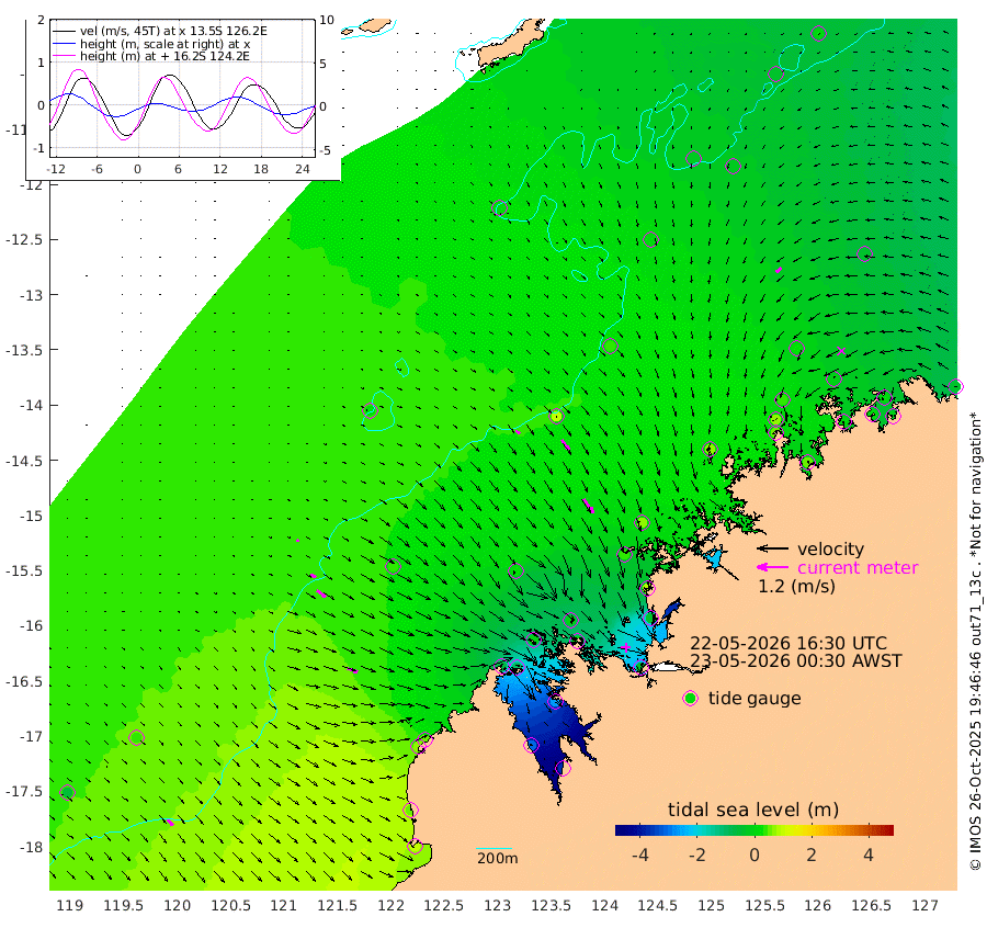 18cm/s 122T +10cm/s rms + 1cm/s 1T. NWSBRW 205m 29cm/s 138T +11cm/s rms + 6cm/s -110T. NWSROW 199m 65cm/s 146T +5cm/s rms + 2cm/s 65T. CAM050 58m 47cm/s 144T +12cm/s rms + 5cm/s 92T. CAM100 99m 10cm/s 122T +7cm/s rms + 1cm/s -85T. KIM400 396m 23cm/s 120T +9cm/s rms + 5cm/s -119T. KIM200 208m 42cm/s 126T +11cm/s rms + 5cm/s -147T. KIM100 99m 42cm/s 109T +8cm/s rms + 3cm/s -103T. KIM050 59m 26cm/s -130T +4cm/s rms + 2cm/s 23T. TIMORS88 91m -56cm Imperieuse Reef 40cm Mermaid Reef 103cm Broome 73cm Cape Baskerville 49cm Red Bluff 56cm Cape Boileau 26cm Scott Reef (WA) 4cm Ashmore Reef -64cm Karrakatta Bay -98cm Sunday Island -307cm Valentine Island -368cm Derby -267cm Port Usborne -14cm Bedford Islands 6cm Yampi Sound (Koolan Island) -5cm Macleay Island 21cm Adele Island 94cm Browse Island -34cm Shale Island -43cm Lizard Island 89cm Hall Point 37cm Degerando Island 67cm White Island 4cm Skua No. 4 Well -17cm Jabiru 63cm Maret Island 63cm Baudin Island 53cm Cape Voltaire (Krait Bay) -40cm Dillon Shoal 3cm Laminaria 47cm Port Warrender -7cm Troughton Island 39cm Cassini Island 19cm West Holothuria Reef Offshore 8cm Jar Island 36cm Lynher Bank 44cm Heywood Shoal -25cm Pee Shoal -33cm Van Cloon Shoal 2cm Carronade Island 3cm Guy Point -9cm Napier Broome Bay -40cm Lesueur Island