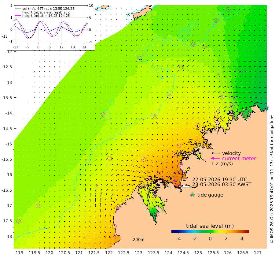 11cm/s -30T +10cm/s rms + 1cm/s 1T. NWSBRW 205m 13cm/s -10T +11cm/s rms + 6cm/s -110T. NWSROW 199m 6cm/s 13T +5cm/s rms + 2cm/s 65T. CAM050 58m 8cm/s 23T +12cm/s rms + 5cm/s 92T. CAM100 99m 4cm/s 50T +7cm/s rms + 1cm/s -85T. KIM400 396m 8cm/s 35T +9cm/s rms + 5cm/s -119T. KIM200 208m 13cm/s 26T +11cm/s rms + 5cm/s -147T. KIM100 99m 24cm/s 18T +8cm/s rms + 3cm/s -103T. KIM050 59m 17cm/s 48T +4cm/s rms + 2cm/s 23T. TIMORS88 91m 71cm Imperieuse Reef 71cm Mermaid Reef 191cm Broome 129cm Cape Baskerville 149cm Red Bluff 110cm Cape Boileau 62cm Scott Reef (WA) 72cm Ashmore Reef 189cm Karrakatta Bay 175cm Sunday Island 103cm Valentine Island 39cm Derby 129cm Port Usborne 220cm Bedford Islands 249cm Yampi Sound (Koolan Island) 267cm Macleay Island 162cm Adele Island 62cm Browse Island 313cm Shale Island 312cm Lizard Island 259cm Hall Point 203cm Degerando Island 189cm White Island 73cm Skua No. 4 Well 55cm Jabiru 146cm Maret Island 126cm Baudin Island 119cm Cape Voltaire (Krait Bay) 34cm Dillon Shoal 44cm Laminaria 126cm Port Warrender 56cm Troughton Island 101cm Cassini Island 64cm West Holothuria Reef Offshore 53cm Jar Island 114cm Lynher Bank 97cm Heywood Shoal 53cm Pee Shoal 8cm Van Cloon Shoal 0cm Carronade Island 0cm Guy Point -10cm Napier Broome Bay -77cm Lesueur Island