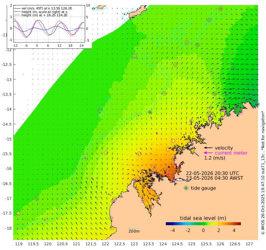 17cm/s -45T +10cm/s rms + 1cm/s 1T. NWSBRW 205m 23cm/s -29T +11cm/s rms + 6cm/s -110T. NWSROW 199m 33cm/s -21T +5cm/s rms + 2cm/s 65T. CAM050 58m 26cm/s -19T +12cm/s rms + 5cm/s 92T. CAM100 99m 5cm/s -5T +7cm/s rms + 1cm/s -85T. KIM400 396m 12cm/s -22T +9cm/s rms + 5cm/s -119T. KIM200 208m 24cm/s -22T +11cm/s rms + 5cm/s -147T. KIM100 99m 27cm/s -23T +8cm/s rms + 3cm/s -103T. KIM050 59m 26cm/s 51T +4cm/s rms + 2cm/s 23T. TIMORS88 91m 79cm Imperieuse Reef 39cm Mermaid Reef 115cm Broome 74cm Cape Baskerville 102cm Red Bluff 58cm Cape Boileau 36cm Scott Reef (WA) 53cm Ashmore Reef 187cm Karrakatta Bay 188cm Sunday Island 224cm Valentine Island 191cm Derby 228cm Port Usborne 197cm Bedford Islands 208cm Yampi Sound (Koolan Island) 232cm Macleay Island 127cm Adele Island 7cm Browse Island 284cm Shale Island 282cm Lizard Island 176cm Hall Point 153cm Degerando Island 126cm White Island 54cm Skua No. 4 Well 41cm Jabiru 91cm Maret Island 73cm Baudin Island 68cm Cape Voltaire (Krait Bay) 33cm Dillon Shoal 31cm Laminaria 73cm Port Warrender 36cm Troughton Island 59cm Cassini Island 34cm West Holothuria Reef Offshore 26cm Jar Island 77cm Lynher Bank 52cm Heywood Shoal 47cm Pee Shoal 4cm Van Cloon Shoal -22cm Carronade Island -24cm Guy Point -31cm Napier Broome Bay -76cm Lesueur Island