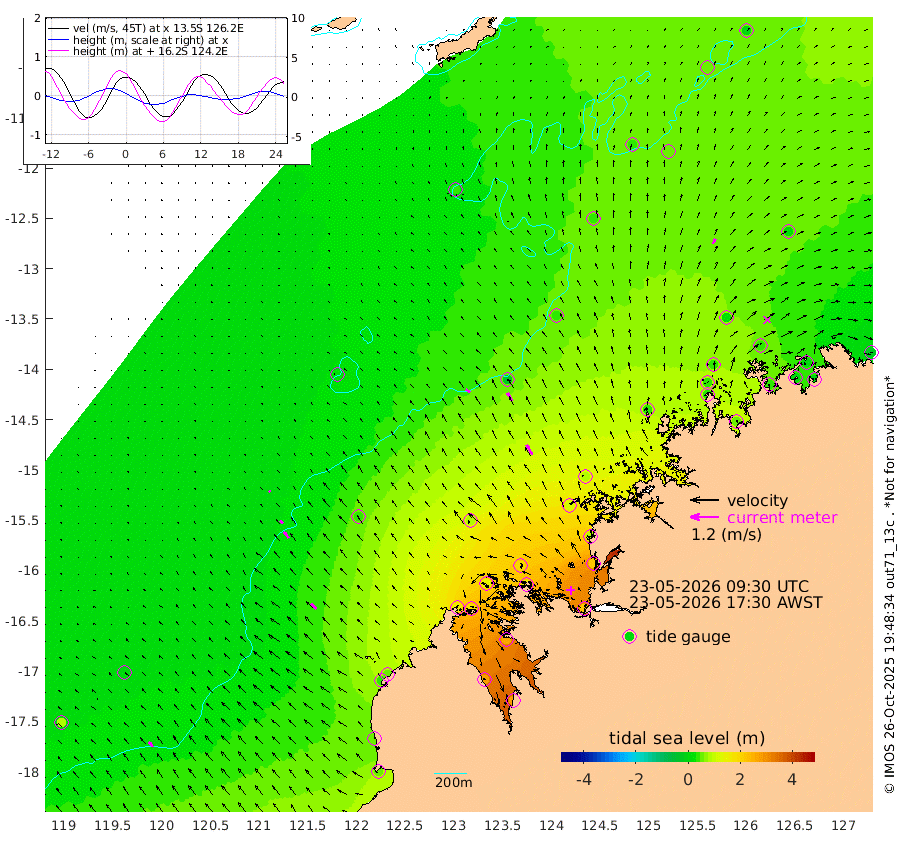 22cm/s -51T +10cm/s rms + 1cm/s 1T. NWSBRW 205m 26cm/s -37T +11cm/s rms + 6cm/s -110T. NWSROW 199m 48cm/s -30T +5cm/s rms + 2cm/s 65T. CAM050 58m 39cm/s -31T +12cm/s rms + 5cm/s 92T. CAM100 99m 8cm/s -41T +7cm/s rms + 1cm/s -85T. KIM400 396m 16cm/s -45T +9cm/s rms + 5cm/s -119T. KIM200 208m 32cm/s -38T +11cm/s rms + 5cm/s -147T. KIM100 99m 34cm/s -44T +8cm/s rms + 3cm/s -103T. KIM050 59m 23cm/s 28T +4cm/s rms + 2cm/s 23T. TIMORS88 91m 83cm Imperieuse Reef 10cm Mermaid Reef 52cm Broome 31cm Cape Baskerville 49cm Red Bluff 47cm Cape Boileau 19cm Scott Reef (WA) 32cm Ashmore Reef 161cm Karrakatta Bay 176cm Sunday Island 270cm Valentine Island 277cm Derby 262cm Port Usborne 139cm Bedford Islands 153cm Yampi Sound (Koolan Island) 182cm Macleay Island 85cm Adele Island -17cm Browse Island 219cm Shale Island 225cm Lizard Island 82cm Hall Point 106cm Degerando Island 77cm White Island 40cm Skua No. 4 Well 47cm Jabiru 45cm Maret Island 32cm Baudin Island 44cm Cape Voltaire (Krait Bay) 55cm Dillon Shoal 5cm Laminaria 57cm Port Warrender 42cm Troughton Island 37cm Cassini Island 27cm West Holothuria Reef Offshore 33cm Jar Island 41cm Lynher Bank 37cm Heywood Shoal 43cm Pee Shoal 29cm Van Cloon Shoal 6cm Carronade Island 10cm Guy Point 14cm Napier Broome Bay -19cm Lesueur Island
