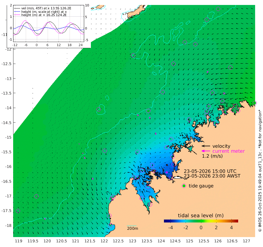 20cm/s 140T +10cm/s rms + 1cm/s 1T. NWSBRW 205m 20cm/s 158T +11cm/s rms + 6cm/s -110T. NWSROW 199m 27cm/s 165T +5cm/s rms + 2cm/s 65T. CAM050 58m 22cm/s 167T +12cm/s rms + 5cm/s 92T. CAM100 99m 4cm/s -174T +7cm/s rms + 1cm/s -85T. KIM400 396m 10cm/s 156T +9cm/s rms + 5cm/s -119T. KIM200 208m 21cm/s 159T +11cm/s rms + 5cm/s -147T. KIM100 99m 24cm/s 164T +8cm/s rms + 3cm/s -103T. KIM050 59m 26cm/s -132T +4cm/s rms + 2cm/s 23T. TIMORS88 91m -101cm Imperieuse Reef -65cm Mermaid Reef -141cm Broome -101cm Cape Baskerville -124cm Red Bluff -107cm Cape Boileau -66cm Scott Reef (WA) -85cm Ashmore Reef -199cm Karrakatta Bay -210cm Sunday Island -216cm Valentine Island -189cm Derby -219cm Port Usborne -201cm Bedford Islands -224cm Yampi Sound (Koolan Island) -246cm Macleay Island -152cm Adele Island -39cm Browse Island -284cm Shale Island -311cm Lizard Island -184cm Hall Point -178cm Degerando Island -158cm White Island -89cm Skua No. 4 Well -88cm Jabiru -124cm Maret Island -108cm Baudin Island -113cm Cape Voltaire (Krait Bay) -78cm Dillon Shoal -62cm Laminaria -128cm Port Warrender -95cm Troughton Island -104cm Cassini Island -86cm West Holothuria Reef Offshore -85cm Jar Island -107cm Lynher Bank -97cm Heywood Shoal -90cm Pee Shoal -70cm Van Cloon Shoal -52cm Carronade Island -53cm Guy Point -61cm Napier Broome Bay -15cm Lesueur Island