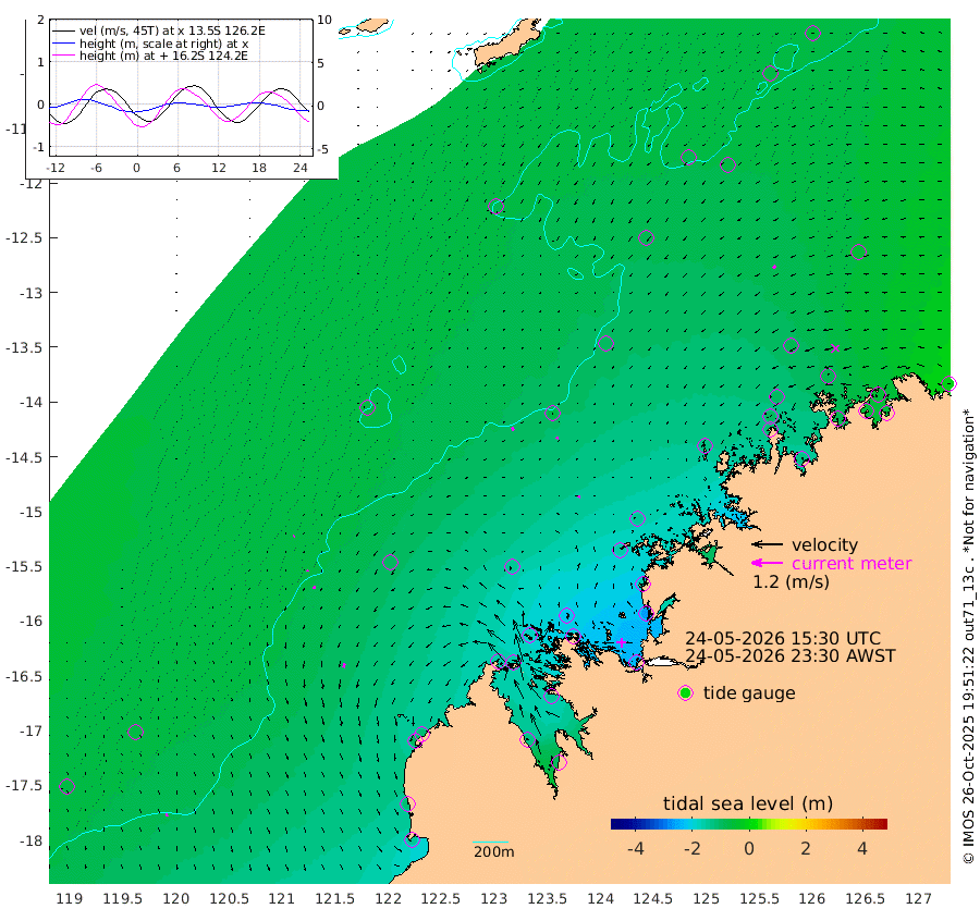 11cm/s 145T +10cm/s rms + 1cm/s 1T. NWSBRW 205m 11cm/s 172T +11cm/s rms + 6cm/s -110T. NWSROW 199m 10cm/s -165T +5cm/s rms + 2cm/s 65T. CAM050 58m 9cm/s -167T +12cm/s rms + 5cm/s 92T. CAM100 99m 4cm/s -134T +7cm/s rms + 1cm/s -85T. KIM400 396m 5cm/s -167T +9cm/s rms + 5cm/s -119T. KIM200 208m 11cm/s -176T +11cm/s rms + 5cm/s -147T. KIM100 99m 16cm/s -163T +8cm/s rms + 3cm/s -103T. KIM050 59m 15cm/s -138T +4cm/s rms + 2cm/s 23T. TIMORS88 91m -75cm Imperieuse Reef -66cm Mermaid Reef -141cm Broome -101cm Cape Baskerville -109cm Red Bluff -107cm Cape Boileau -67cm Scott Reef (WA) -76cm Ashmore Reef -153cm Karrakatta Bay -159cm Sunday Island -131cm Valentine Island -91cm Derby -136cm Port Usborne -166cm Bedford Islands -189cm Yampi Sound (Koolan Island) -218cm Macleay Island -139cm Adele Island -62cm Browse Island -228cm Shale Island -265cm Lizard Island -151cm Hall Point -157cm Degerando Island -150cm White Island -82cm Skua No. 4 Well -71cm Jabiru -121cm Maret Island -105cm Baudin Island -109cm Cape Voltaire (Krait Bay) -61cm Dillon Shoal -57cm Laminaria -122cm Port Warrender -86cm Troughton Island -100cm Cassini Island -83cm West Holothuria Reef Offshore -77cm Jar Island -102cm Lynher Bank -92cm Heywood Shoal -78cm Pee Shoal -59cm Van Cloon Shoal -51cm Carronade Island -52cm Guy Point -59cm Napier Broome Bay -13cm Lesueur Island