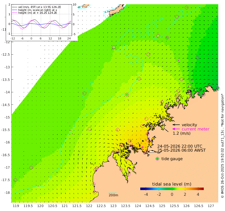 4cm/s -26T +10cm/s rms + 1cm/s 1T. NWSBRW 205m 9cm/s -8T +11cm/s rms + 6cm/s -110T. NWSROW 199m 9cm/s 28T +5cm/s rms + 2cm/s 65T. CAM050 58m 9cm/s 31T +12cm/s rms + 5cm/s 92T. CAM100 99m 4cm/s 54T +7cm/s rms + 1cm/s -85T. KIM400 396m 6cm/s 35T +9cm/s rms + 5cm/s -119T. KIM200 208m 11cm/s 24T +11cm/s rms + 5cm/s -147T. KIM100 99m 16cm/s 21T +8cm/s rms + 3cm/s -103T. KIM050 59m 12cm/s 51T +4cm/s rms + 2cm/s 23T. TIMORS88 91m 60cm Imperieuse Reef 59cm Mermaid Reef 124cm Broome 88cm Cape Baskerville 81cm Red Bluff 74cm Cape Boileau 59cm Scott Reef (WA) 66cm Ashmore Reef 128cm Karrakatta Bay 131cm Sunday Island 122cm Valentine Island 83cm Derby 131cm Port Usborne 154cm Bedford Islands 168cm Yampi Sound (Koolan Island) 207cm Macleay Island 127cm Adele Island 55cm Browse Island 205cm Shale Island 219cm Lizard Island 102cm Hall Point 136cm Degerando Island 128cm White Island 72cm Skua No. 4 Well 44cm Jabiru 107cm Maret Island 86cm Baudin Island 90cm Cape Voltaire (Krait Bay) 45cm Dillon Shoal 55cm Laminaria 95cm Port Warrender 67cm Troughton Island 83cm Cassini Island 63cm West Holothuria Reef Offshore 50cm Jar Island 89cm Lynher Bank 74cm Heywood Shoal 65cm Pee Shoal 29cm Van Cloon Shoal 21cm Carronade Island 22cm Guy Point 14cm Napier Broome Bay -22cm Lesueur Island