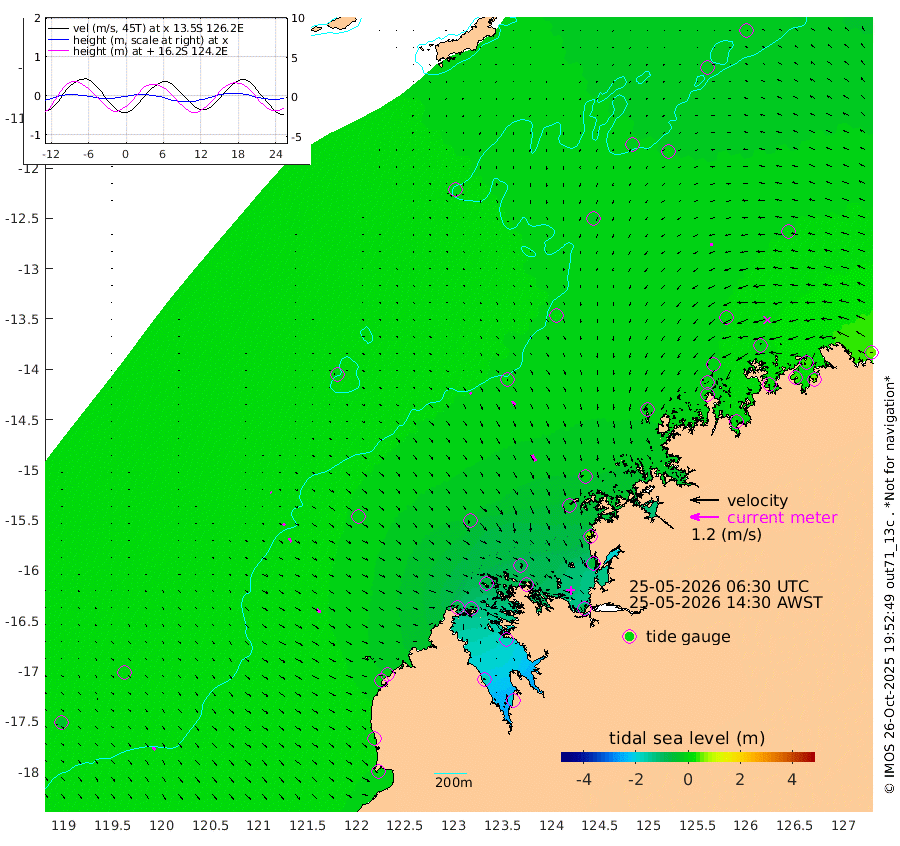 7cm/s 134T +10cm/s rms + 1cm/s 1T. NWSBRW 205m 15cm/s 143T +11cm/s rms + 6cm/s -110T. NWSROW 199m 29cm/s 152T +5cm/s rms + 2cm/s 65T. CAM050 58m 21cm/s 151T +12cm/s rms + 5cm/s 92T. CAM100 99m 4cm/s 135T +7cm/s rms + 1cm/s -85T. KIM400 396m 9cm/s 138T +9cm/s rms + 5cm/s -119T. KIM200 208m 19cm/s 145T +11cm/s rms + 5cm/s -147T. KIM100 99m 21cm/s 128T +8cm/s rms + 3cm/s -103T. KIM050 59m 10cm/s -113T +4cm/s rms + 2cm/s 23T. TIMORS88 91m -36cm Imperieuse Reef 6cm Mermaid Reef 4cm Broome 2cm Cape Baskerville -2cm Red Bluff 13cm Cape Boileau -1cm Scott Reef (WA) -11cm Ashmore Reef -69cm Karrakatta Bay -82cm Sunday Island -178cm Valentine Island -190cm Derby -166cm Port Usborne -75cm Bedford Islands -55cm Yampi Sound (Koolan Island) -90cm Macleay Island -37cm Adele Island 29cm Browse Island -83cm Shale Island -54cm Lizard Island 64cm Hall Point -29cm Degerando Island -1cm White Island -16cm Skua No. 4 Well 6cm Jabiru -6cm Maret Island 10cm Baudin Island 4cm Cape Voltaire (Krait Bay) -20cm Dillon Shoal -4cm Laminaria 6cm Port Warrender -3cm Troughton Island -3cm Cassini Island 8cm West Holothuria Reef Offshore 18cm Jar Island -4cm Lynher Bank 3cm Heywood Shoal -21cm Pee Shoal 10cm Van Cloon Shoal 34cm Carronade Island 33cm Guy Point 45cm Napier Broome Bay 51cm Lesueur Island