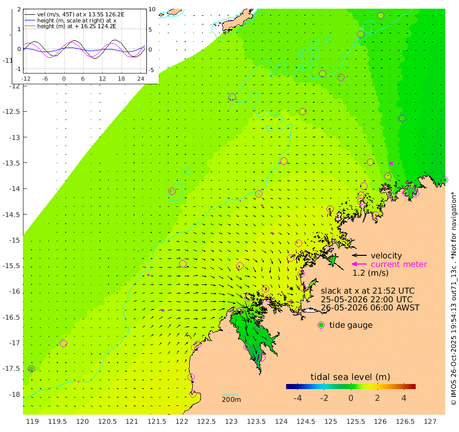 7cm/s 111T +10cm/s rms + 1cm/s 1T. NWSBRW 205m 8cm/s 102T +11cm/s rms + 6cm/s -110T. NWSROW 199m 24cm/s 128T +5cm/s rms + 2cm/s 65T. CAM050 58m 18cm/s 120T +12cm/s rms + 5cm/s 92T. CAM100 99m 6cm/s 91T +7cm/s rms + 1cm/s -85T. KIM400 396m 11cm/s 96T +9cm/s rms + 5cm/s -119T. KIM200 208m 17cm/s 98T +11cm/s rms + 5cm/s -147T. KIM100 99m 23cm/s 73T +8cm/s rms + 3cm/s -103T. KIM050 59m 3cm/s 48T +4cm/s rms + 2cm/s 23T. TIMORS88 91m 39cm Imperieuse Reef 78cm Mermaid Reef 145cm Broome 105cm Cape Baskerville 78cm Red Bluff 92cm Cape Boileau 75cm Scott Reef (WA) 74cm Ashmore Reef 83cm Karrakatta Bay 80cm Sunday Island -3cm Valentine Island -48cm Derby 22cm Port Usborne 119cm Bedford Islands 143cm Yampi Sound (Koolan Island) 181cm Macleay Island 125cm Adele Island 94cm Browse Island 155cm Shale Island 172cm Lizard Island 104cm Hall Point 130cm Degerando Island 141cm White Island 80cm Skua No. 4 Well 49cm Jabiru 123cm Maret Island 106cm Baudin Island 111cm Cape Voltaire (Krait Bay) 48cm Dillon Shoal 70cm Laminaria 113cm Port Warrender 81cm Troughton Island 101cm Cassini Island 84cm West Holothuria Reef Offshore 68cm Jar Island 101cm Lynher Bank 96cm Heywood Shoal 68cm Pee Shoal 40cm Van Cloon Shoal 50cm Carronade Island 54cm Guy Point 43cm Napier Broome Bay 9cm Lesueur Island