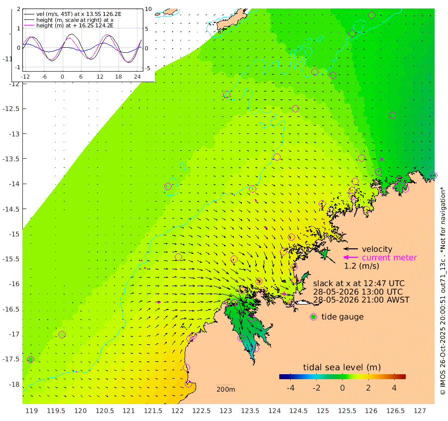 6cm/s 71T +10cm/s rms + 1cm/s 1T. NWSBRW 205m 8cm/s 91T +11cm/s rms + 6cm/s -110T. NWSROW 199m 27cm/s 138T +5cm/s rms + 2cm/s 65T. CAM050 58m 18cm/s 129T +12cm/s rms + 5cm/s 92T. CAM100 99m 7cm/s 86T +7cm/s rms + 1cm/s -85T. KIM400 396m 11cm/s 97T +9cm/s rms + 5cm/s -119T. KIM200 208m 17cm/s 97T +11cm/s rms + 5cm/s -147T. KIM100 99m 28cm/s 65T +8cm/s rms + 3cm/s -103T. KIM050 59m 6cm/s -148T +4cm/s rms + 2cm/s 23T. TIMORS88 91m 31cm Imperieuse Reef 75cm Mermaid Reef 197cm Broome 146cm Cape Baskerville 165cm Red Bluff 142cm Cape Boileau 69cm Scott Reef (WA) 60cm Ashmore Reef 132cm Karrakatta Bay 118cm Sunday Island -21cm Valentine Island -104cm Derby -10cm Port Usborne 173cm Bedford Islands 195cm Yampi Sound (Koolan Island) 246cm Macleay Island 160cm Adele Island 99cm Browse Island 206cm Shale Island 199cm Lizard Island 159cm Hall Point 175cm Degerando Island 175cm White Island 74cm Skua No. 4 Well 37cm Jabiru 144cm Maret Island 126cm Baudin Island 118cm Cape Voltaire (Krait Bay) 33cm Dillon Shoal 40cm Laminaria 127cm Port Warrender 41cm Troughton Island 106cm Cassini Island 71cm West Holothuria Reef Offshore 39cm Jar Island 103cm Lynher Bank 113cm Heywood Shoal 49cm Pee Shoal 5cm Van Cloon Shoal -1cm Carronade Island 5cm Guy Point -2cm Napier Broome Bay -101cm Lesueur Island