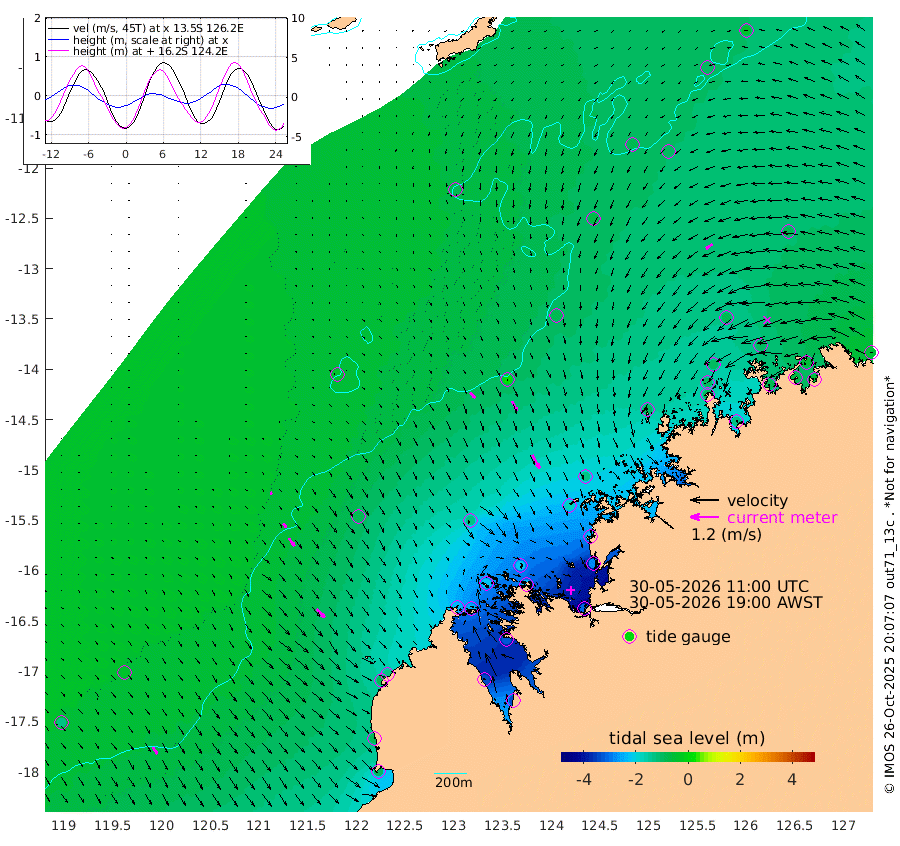 30cm/s 136T +10cm/s rms + 1cm/s 1T. NWSBRW 205m 34cm/s 148T +11cm/s rms + 6cm/s -110T. NWSROW 199m 65cm/s 152T +5cm/s rms + 2cm/s 65T. CAM050 58m 48cm/s 154T +12cm/s rms + 5cm/s 92T. CAM100 99m 9cm/s 142T +7cm/s rms + 1cm/s -85T. KIM400 396m 21cm/s 137T +9cm/s rms + 5cm/s -119T. KIM200 208m 41cm/s 144T +11cm/s rms + 5cm/s -147T. KIM100 99m 47cm/s 135T +8cm/s rms + 3cm/s -103T. KIM050 59m 34cm/s -125T +4cm/s rms + 2cm/s 23T. TIMORS88 91m -127cm Imperieuse Reef -41cm Mermaid Reef -97cm Broome -76cm Cape Baskerville -126cm Red Bluff -77cm Cape Boileau -41cm Scott Reef (WA) -81cm Ashmore Reef -231cm Karrakatta Bay -253cm Sunday Island -341cm Valentine Island -341cm Derby -321cm Port Usborne -222cm Bedford Islands -228cm Yampi Sound (Koolan Island) -218cm Macleay Island -132cm Adele Island 25cm Browse Island -302cm Shale Island -274cm Lizard Island -230cm Hall Point -171cm Degerando Island -129cm White Island -72cm Skua No. 4 Well -99cm Jabiru -102cm Maret Island -97cm Baudin Island -94cm Cape Voltaire (Krait Bay) -94cm Dillon Shoal -45cm Laminaria -126cm Port Warrender -103cm Troughton Island -92cm Cassini Island -77cm West Holothuria Reef Offshore -89cm Jar Island -84cm Lynher Bank -78cm Heywood Shoal -88cm Pee Shoal -82cm Van Cloon Shoal -58cm Carronade Island -61cm Guy Point -58cm Napier Broome Bay -53cm Lesueur Island
