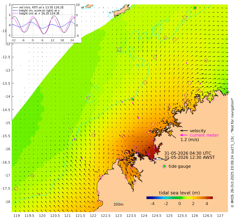 27cm/s -43T +10cm/s rms + 1cm/s 1T. NWSBRW 205m 33cm/s -29T +11cm/s rms + 6cm/s -110T. NWSROW 199m 50cm/s -30T +5cm/s rms + 2cm/s 65T. CAM050 58m 41cm/s -26T +12cm/s rms + 5cm/s 92T. CAM100 99m 9cm/s -32T +7cm/s rms + 1cm/s -85T. KIM400 396m 18cm/s -35T +9cm/s rms + 5cm/s -119T. KIM200 208m 37cm/s -29T +11cm/s rms + 5cm/s -147T. KIM100 99m 44cm/s -32T +8cm/s rms + 3cm/s -103T. KIM050 59m 23cm/s 32T +4cm/s rms + 2cm/s 23T. TIMORS88 91m 137cm Imperieuse Reef 62cm Mermaid Reef 187cm Broome 131cm Cape Baskerville 183cm Red Bluff 147cm Cape Boileau 62cm Scott Reef (WA) 99cm Ashmore Reef 273cm Karrakatta Bay 281cm Sunday Island 298cm Valentine Island 268cm Derby 295cm Port Usborne 270cm Bedford Islands 313cm Yampi Sound (Koolan Island) 323cm Macleay Island 195cm Adele Island 39cm Browse Island 390cm Shale Island 388cm Lizard Island 343cm Hall Point 253cm Degerando Island 218cm White Island 93cm Skua No. 4 Well 116cm Jabiru 169cm Maret Island 152cm Baudin Island 159cm Cape Voltaire (Krait Bay) 99cm Dillon Shoal 30cm Laminaria 203cm Port Warrender 135cm Troughton Island 146cm Cassini Island 114cm West Holothuria Reef Offshore 128cm Jar Island 122cm Lynher Bank 119cm Heywood Shoal 99cm Pee Shoal 94cm Van Cloon Shoal 85cm Carronade Island 83cm Guy Point 92cm Napier Broome Bay 40cm Lesueur Island