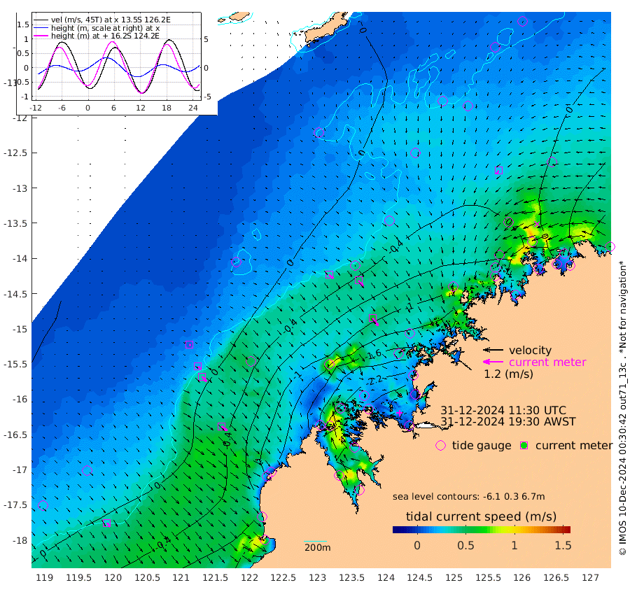 33cm/s 129T +10cm/s rms + 1cm/s 1T. NWSBRW 205m 31cm/s 143T +11cm/s rms + 6cm/s -110T. NWSROW 199m 57cm/s 143T +5cm/s rms + 2cm/s 65T. CAM050 58m 45cm/s 142T +12cm/s rms + 5cm/s 92T. CAM100 99m 9cm/s 131T +7cm/s rms + 1cm/s -85T. KIM400 396m 19cm/s 133T +9cm/s rms + 5cm/s -119T. KIM200 208m 38cm/s 139T +11cm/s rms + 5cm/s -147T. KIM100 99m 43cm/s 127T +8cm/s rms + 3cm/s -103T. KIM050 59m 24cm/s -143T +4cm/s rms + 2cm/s 23T. TIMORS88 91m -53cm Imperieuse Reef 28cm Mermaid Reef -52cm Broome -21cm Cape Baskerville -99cm Red Bluff -21cm Cape Boileau 29cm Scott Reef (WA) 8cm Ashmore Reef -174cm Karrakatta Bay -170cm Sunday Island -242cm Valentine Island -231cm Derby -231cm Port Usborne -146cm Bedford Islands -171cm Yampi Sound (Koolan Island) -180cm Macleay Island -74cm Adele Island 50cm Browse Island -253cm Shale Island -206cm Lizard Island -252cm Hall Point -112cm Degerando Island -77cm White Island 17cm Skua No. 4 Well 0cm Jabiru -25cm Maret Island -21cm Baudin Island -8cm Cape Voltaire (Krait Bay) 2cm Dillon Shoal 61cm Laminaria -31cm Port Warrender 28cm Troughton Island -1cm Cassini Island 19cm West Holothuria Reef Offshore 18cm Jar Island -5cm Lynher Bank 11cm Heywood Shoal 20cm Pee Shoal 38cm Van Cloon Shoal 67cm Carronade Island 75cm Guy Point 72cm Napier Broome Bay 130cm Lesueur Island