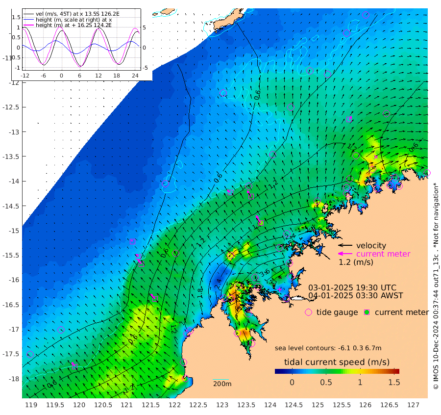 34cm/s -50T +10cm/s rms + 1cm/s 1T. NWSBRW 205m 42cm/s -36T +11cm/s rms + 6cm/s -110T. NWSROW 199m 76cm/s -32T +5cm/s rms + 2cm/s 65T. CAM050 58m 60cm/s -31T +12cm/s rms + 5cm/s 92T. CAM100 99m 13cm/s -43T +7cm/s rms + 1cm/s -85T. KIM400 396m 27cm/s -44T +9cm/s rms + 5cm/s -119T. KIM200 208m 51cm/s -38T +11cm/s rms + 5cm/s -147T. KIM100 99m 56cm/s -44T +8cm/s rms + 3cm/s -103T. KIM050 59m 34cm/s 33T +4cm/s rms + 2cm/s 23T. TIMORS88 91m 136cm Imperieuse Reef 20cm Mermaid Reef 117cm Broome 78cm Cape Baskerville 154cm Red Bluff 91cm Cape Boileau 22cm Scott Reef (WA) 63cm Ashmore Reef 280cm Karrakatta Bay 273cm Sunday Island 402cm Valentine Island 373cm Derby 368cm Port Usborne 235cm Bedford Islands 279cm Yampi Sound (Koolan Island) 283cm Macleay Island 147cm Adele Island -25cm Browse Island 390cm Shale Island 380cm Lizard Island 231cm Hall Point 200cm Degerando Island 157cm White Island 62cm Skua No. 4 Well 59cm Jabiru 102cm Maret Island 91cm Baudin Island 97cm Cape Voltaire (Krait Bay) 80cm Dillon Shoal -2cm Laminaria 132cm Port Warrender 87cm Troughton Island 90cm Cassini Island 63cm West Holothuria Reef Offshore 83cm Jar Island 68cm Lynher Bank 71cm Heywood Shoal 68cm Pee Shoal 57cm Van Cloon Shoal 29cm Carronade Island 26cm Guy Point 35cm Napier Broome Bay -17cm Lesueur Island