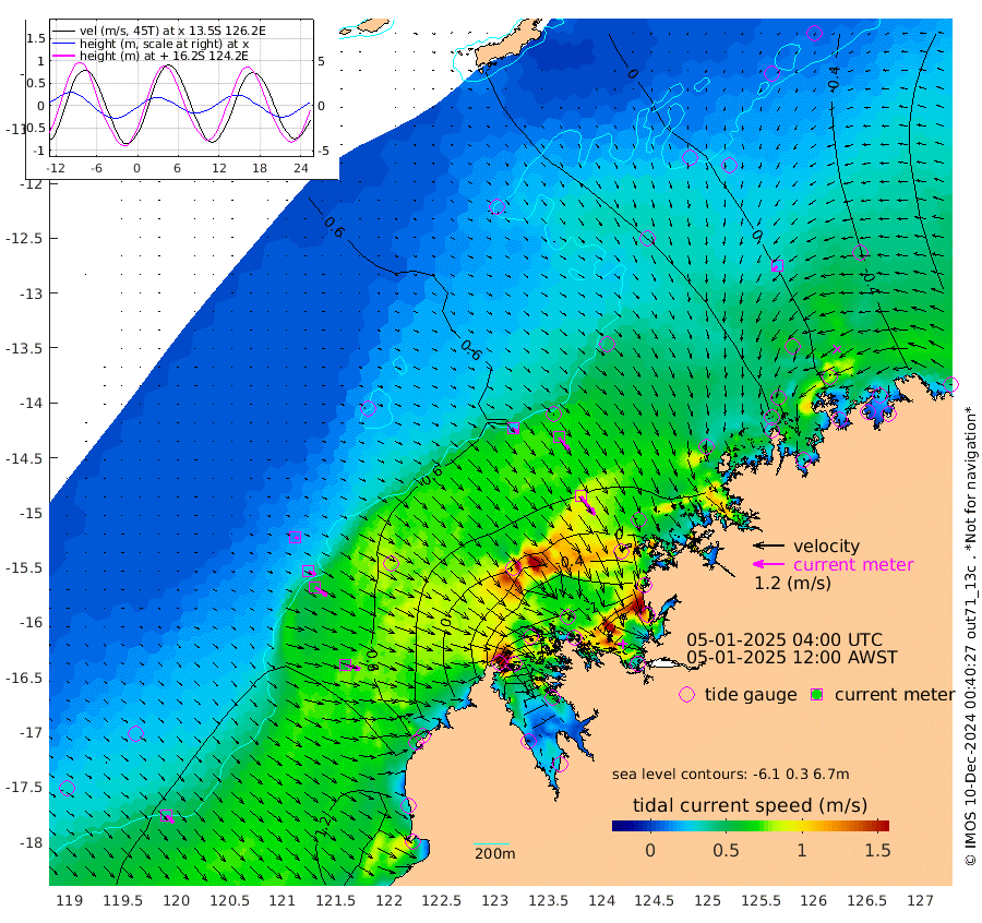 26cm/s 121T +10cm/s rms + 1cm/s 1T. NWSBRW 205m 39cm/s 138T +11cm/s rms + 6cm/s -110T. NWSROW 199m 91cm/s 143T +5cm/s rms + 2cm/s 65T. CAM050 58m 64cm/s 141T +12cm/s rms + 5cm/s 92T. CAM100 99m 14cm/s 120T +7cm/s rms + 1cm/s -85T. KIM400 396m 30cm/s 118T +9cm/s rms + 5cm/s -119T. KIM200 208m 56cm/s 125T +11cm/s rms + 5cm/s -147T. KIM100 99m 60cm/s 107T +8cm/s rms + 3cm/s -103T. KIM050 59m 24cm/s -137T +4cm/s rms + 2cm/s 23T. TIMORS88 91m -54cm Imperieuse Reef 72cm Mermaid Reef 144cm Broome 113cm Cape Baskerville 55cm Red Bluff 92cm Cape Boileau 61cm Scott Reef (WA) 31cm Ashmore Reef -69cm Karrakatta Bay -109cm Sunday Island -372cm Valentine Island -444cm Derby -318cm Port Usborne 4cm Bedford Islands 6cm Yampi Sound (Koolan Island) 17cm Macleay Island 49cm Adele Island 141cm Browse Island -51cm Shale Island -68cm Lizard Island 87cm Hall Point 60cm Degerando Island 85cm White Island 43cm Skua No. 4 Well 24cm Jabiru 101cm Maret Island 97cm Baudin Island 88cm Cape Voltaire (Krait Bay) -17cm Dillon Shoal 40cm Laminaria 71cm Port Warrender 28cm Troughton Island 80cm Cassini Island 51cm West Holothuria Reef Offshore 30cm Jar Island 66cm Lynher Bank 82cm Heywood Shoal 9cm Pee Shoal -9cm Van Cloon Shoal 29cm Carronade Island 34cm Guy Point 20cm Napier Broome Bay -10cm Lesueur Island