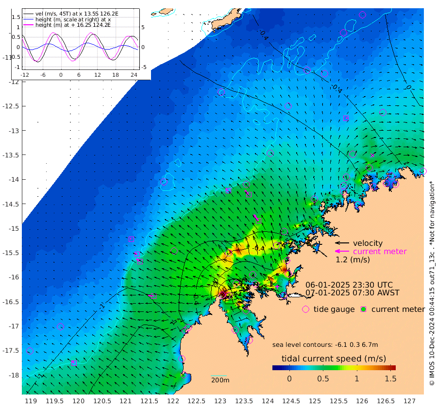 22cm/s -53T +10cm/s rms + 1cm/s 1T. NWSBRW 205m 25cm/s -49T +11cm/s rms + 6cm/s -110T. NWSROW 199m 68cm/s -37T +5cm/s rms + 2cm/s 65T. CAM050 58m 49cm/s -41T +12cm/s rms + 5cm/s 92T. CAM100 99m 10cm/s -66T +7cm/s rms + 1cm/s -85T. KIM400 396m 22cm/s -66T +9cm/s rms + 5cm/s -119T. KIM200 208m 40cm/s -58T +11cm/s rms + 5cm/s -147T. KIM100 99m 49cm/s -81T +8cm/s rms + 3cm/s -103T. KIM050 59m 14cm/s 57T +4cm/s rms + 2cm/s 23T. TIMORS88 91m 7cm Imperieuse Reef -88cm Mermaid Reef -167cm Broome -127cm Cape Baskerville -90cm Red Bluff -121cm Cape Boileau -76cm Scott Reef (WA) -66cm Ashmore Reef 8cm Karrakatta Bay 33cm Sunday Island 277cm Valentine Island 340cm Derby 223cm Port Usborne -52cm Bedford Islands -72cm Yampi Sound (Koolan Island) -62cm Macleay Island -85cm Adele Island -141cm Browse Island -36cm Shale Island -54cm Lizard Island -123cm Hall Point -111cm Degerando Island -132cm White Island -68cm Skua No. 4 Well -43cm Jabiru -135cm Maret Island -130cm Baudin Island -130cm Cape Voltaire (Krait Bay) -18cm Dillon Shoal -59cm Laminaria -130cm Port Warrender -85cm Troughton Island -119cm Cassini Island -94cm West Holothuria Reef Offshore -90cm Jar Island -99cm Lynher Bank -107cm Heywood Shoal -48cm Pee Shoal -51cm Van Cloon Shoal -91cm Carronade Island -90cm Guy Point -94cm Napier Broome Bay -70cm Lesueur Island