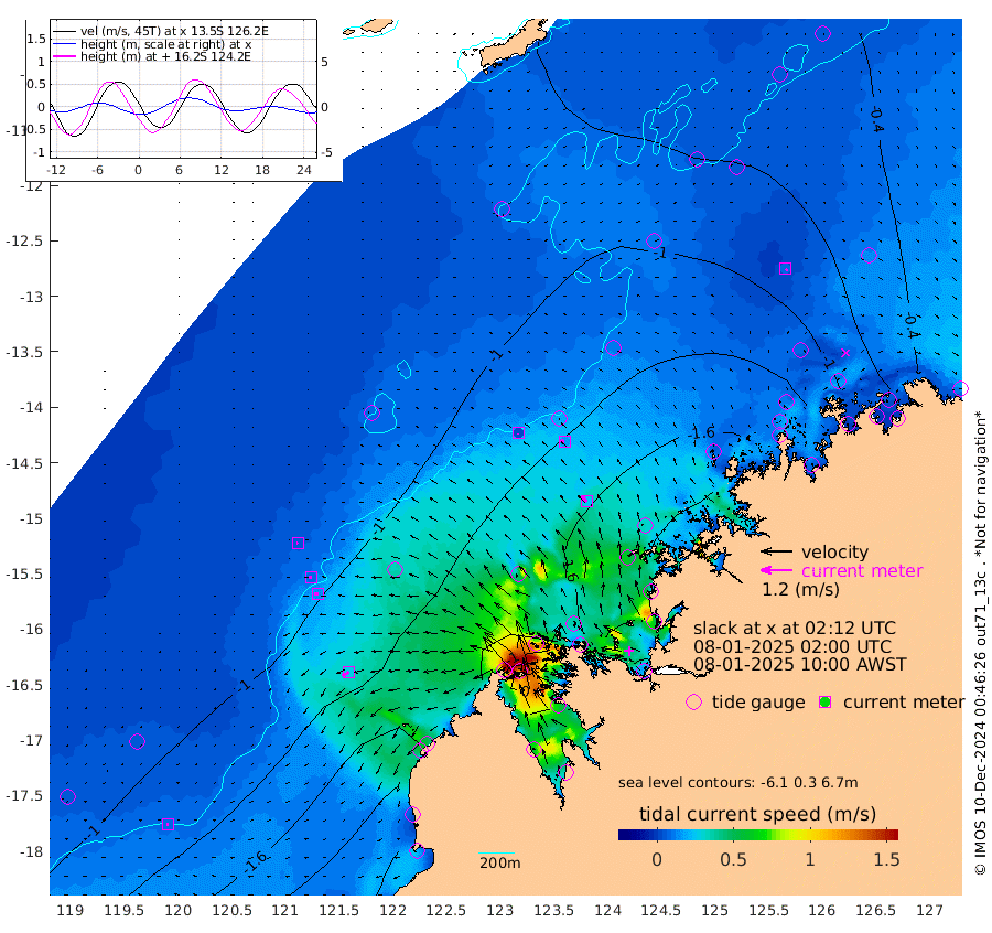 3cm/s -177T +10cm/s rms + 1cm/s 1T. NWSBRW 205m 7cm/s -110T +11cm/s rms + 6cm/s -110T. NWSROW 199m 24cm/s -44T +5cm/s rms + 2cm/s 65T. CAM050 58m 16cm/s -60T +12cm/s rms + 5cm/s 92T. CAM100 99m 6cm/s -100T +7cm/s rms + 1cm/s -85T. KIM400 396m 10cm/s -97T +9cm/s rms + 5cm/s -119T. KIM200 208m 15cm/s -99T +11cm/s rms + 5cm/s -147T. KIM100 99m 28cm/s -120T +8cm/s rms + 3cm/s -103T. KIM050 59m 9cm/s 123T +4cm/s rms + 2cm/s 23T. TIMORS88 91m -62cm Imperieuse Reef -91cm Mermaid Reef -215cm Broome -150cm Cape Baskerville -140cm Red Bluff -152cm Cape Boileau -84cm Scott Reef (WA) -89cm Ashmore Reef -135cm Karrakatta Bay -116cm Sunday Island 43cm Valentine Island 111cm Derby 0cm Port Usborne -174cm Bedford Islands -216cm Yampi Sound (Koolan Island) -219cm Macleay Island -157cm Adele Island -122cm Browse Island -241cm Shale Island -274cm Lizard Island -138cm Hall Point -203cm Degerando Island -205cm White Island -93cm Skua No. 4 Well -48cm Jabiru -172cm Maret Island -158cm Baudin Island -164cm Cape Voltaire (Krait Bay) -46cm Dillon Shoal -53cm Laminaria -175cm Port Warrender -111cm Troughton Island -146cm Cassini Island -110cm West Holothuria Reef Offshore -114cm Jar Island -132cm Lynher Bank -127cm Heywood Shoal -73cm Pee Shoal -64cm Van Cloon Shoal -84cm Carronade Island -81cm Guy Point -89cm Napier Broome Bay -36cm Lesueur Island