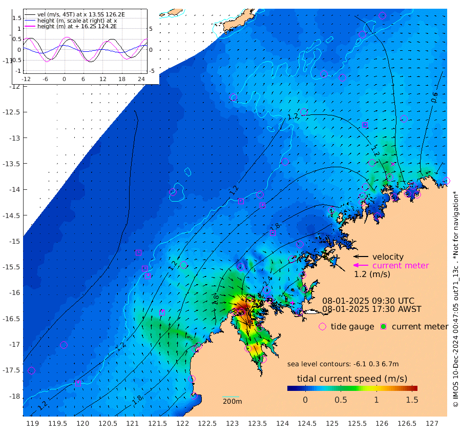 9cm/s -27T +10cm/s rms + 1cm/s 1T. NWSBRW 205m 13cm/s -10T +11cm/s rms + 6cm/s -110T. NWSROW 199m 11cm/s 18T +5cm/s rms + 2cm/s 65T. CAM050 58m 13cm/s 21T +12cm/s rms + 5cm/s 92T. CAM100 99m 5cm/s 37T +7cm/s rms + 1cm/s -85T. KIM400 396m 8cm/s 29T +9cm/s rms + 5cm/s -119T. KIM200 208m 16cm/s 20T +11cm/s rms + 5cm/s -147T. KIM100 99m 26cm/s 15T +8cm/s rms + 3cm/s -103T. KIM050 59m 11cm/s 28T +4cm/s rms + 2cm/s 23T. TIMORS88 91m 106cm Imperieuse Reef 98cm Mermaid Reef 207cm Broome 150cm Cape Baskerville 144cm Red Bluff 139cm Cape Boileau 93cm Scott Reef (WA) 113cm Ashmore Reef 204cm Karrakatta Bay 195cm Sunday Island 150cm Valentine Island 92cm Derby 166cm Port Usborne 231cm Bedford Islands 266cm Yampi Sound (Koolan Island) 289cm Macleay Island 188cm Adele Island 91cm Browse Island 319cm Shale Island 330cm Lizard Island 143cm Hall Point 222cm Degerando Island 211cm White Island 120cm Skua No. 4 Well 88cm Jabiru 181cm Maret Island 162cm Baudin Island 167cm Cape Voltaire (Krait Bay) 87cm Dillon Shoal 83cm Laminaria 179cm Port Warrender 140cm Troughton Island 158cm Cassini Island 122cm West Holothuria Reef Offshore 123cm Jar Island 141cm Lynher Bank 137cm Heywood Shoal 109cm Pee Shoal 80cm Van Cloon Shoal 81cm Carronade Island 83cm Guy Point 77cm Napier Broome Bay 39cm Lesueur Island